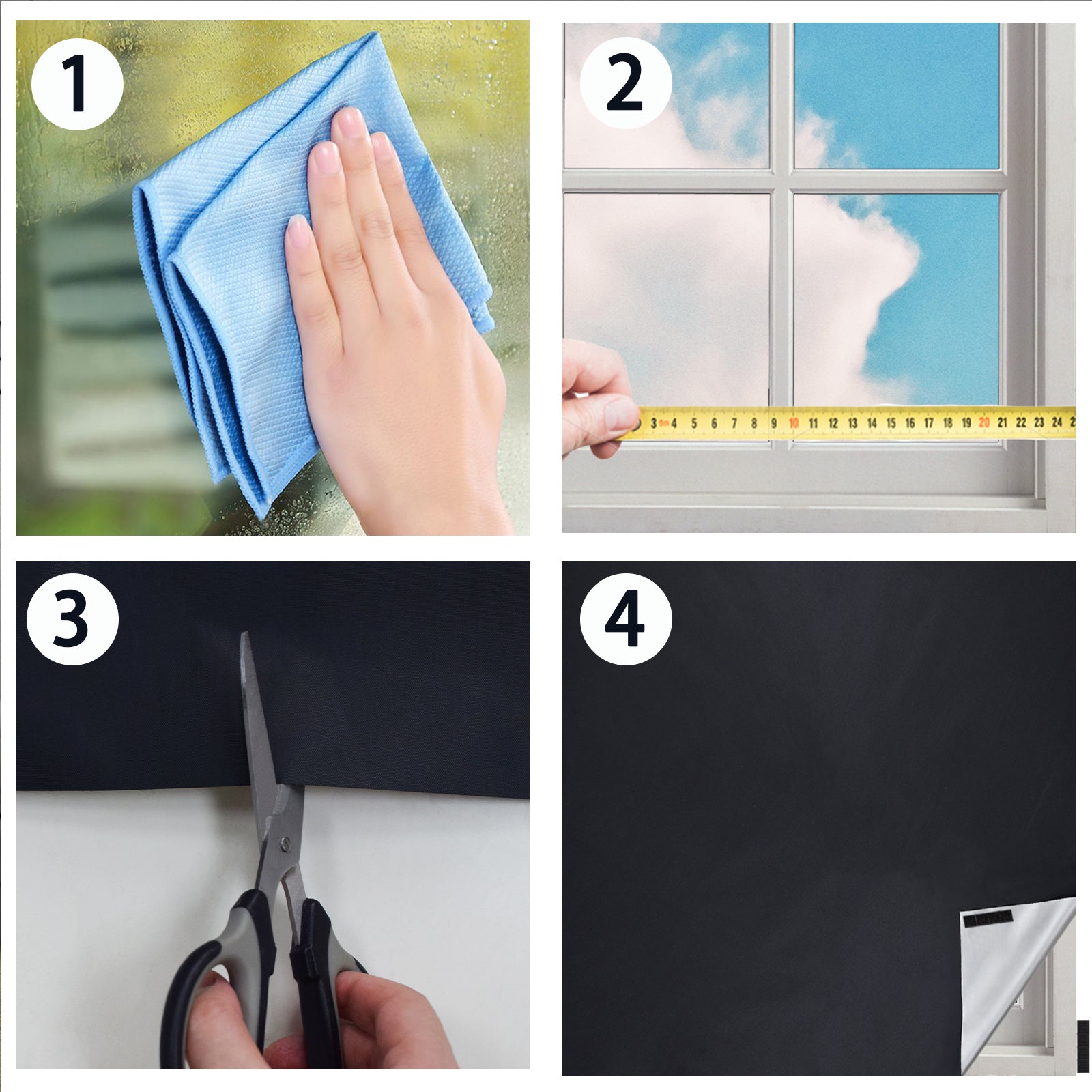 Dank des zuschneidbaren Designs kann der Vorhang individuell an jede Fensterform angepasst werden. Einfach Fenster ausmessen, Vorhang zuschneiden und mit dem mitgelieferten Klettband befestigen. Fuer eine optimale Verdunkelung empfehlen wir, den Vorhang rundum 1 bis 2 cm groesser als das Fenster zuzuschneiden.