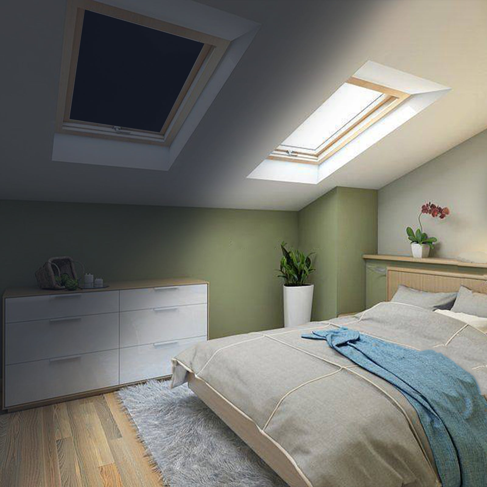 - Verdunkelung: Blockiert 90–100 % des Lichts für maximale Privatsphäre und Dunkelheit.