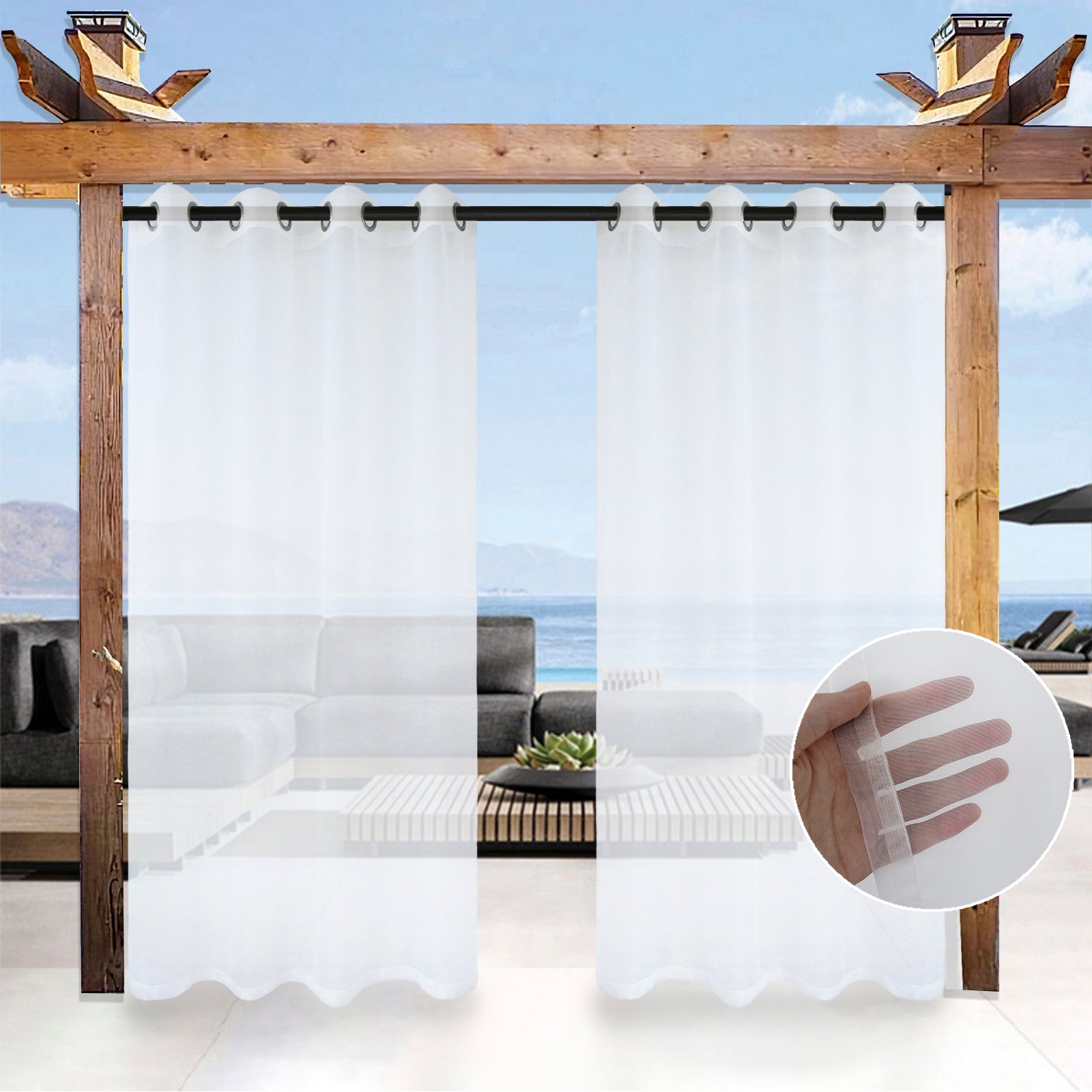 • Transparente Outdoor Gardine aus Voile, wasserabweisend