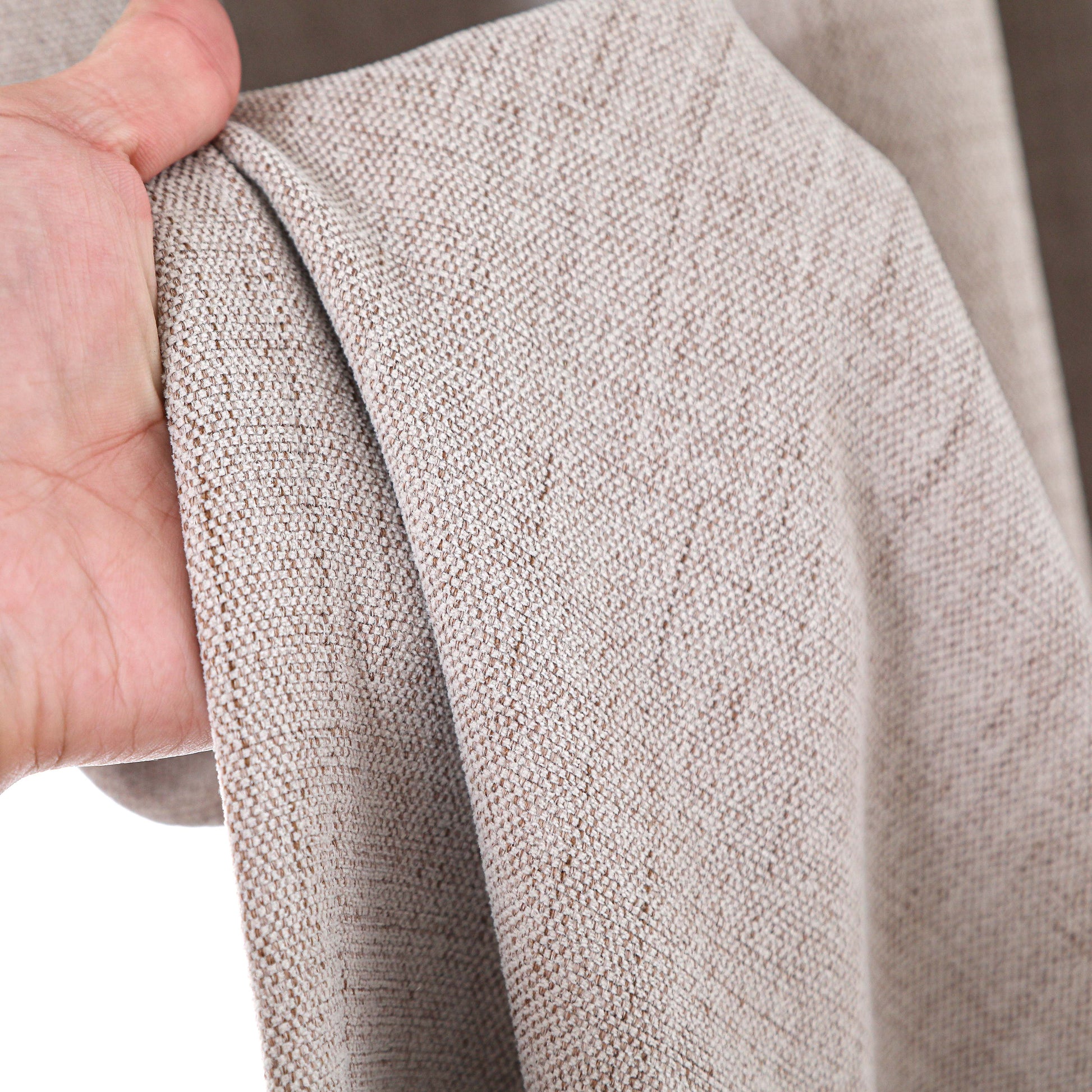 Der BTTO Vanta Vorhang verbindet die feste Haptik von Leinen-Baumwolle mit einem seidigen, fließenden Fall. Er bietet zuverlässige Verdunkelung und verleiht Ihrem Zuhause eine dezente, elegante Ausstrahlung.