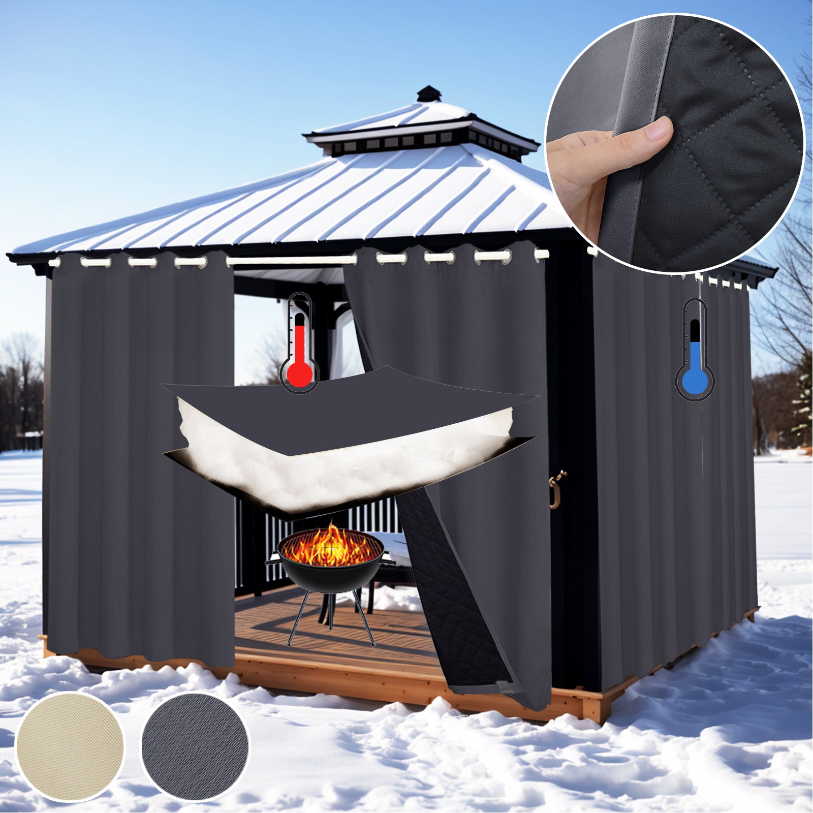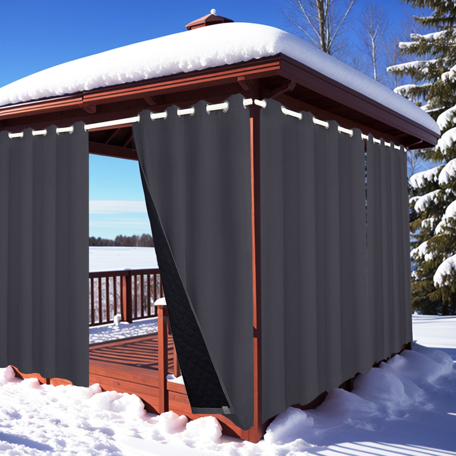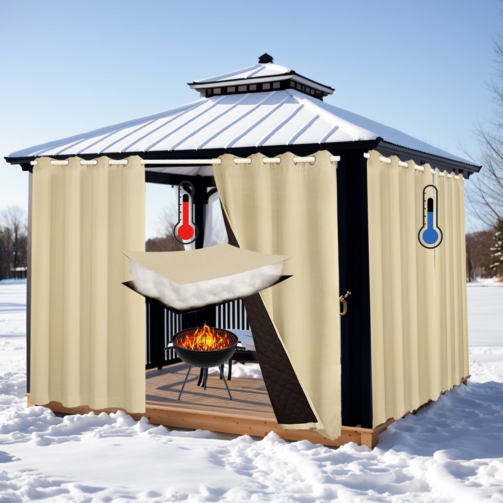 Dieser wasserdichte, gesteppte Outdoor-Thermovorhang ist die ideale Lösung für Balkon, Terrasse oder Garten. Mit seiner doppelten 405 g/m² Stoffstruktur sorgt er für absolute Verdunkelung, zuverlässigen Schutz vor Wetter und Geräuschen sowie ein angenehmes Raumklima – das ganze Jahr über.