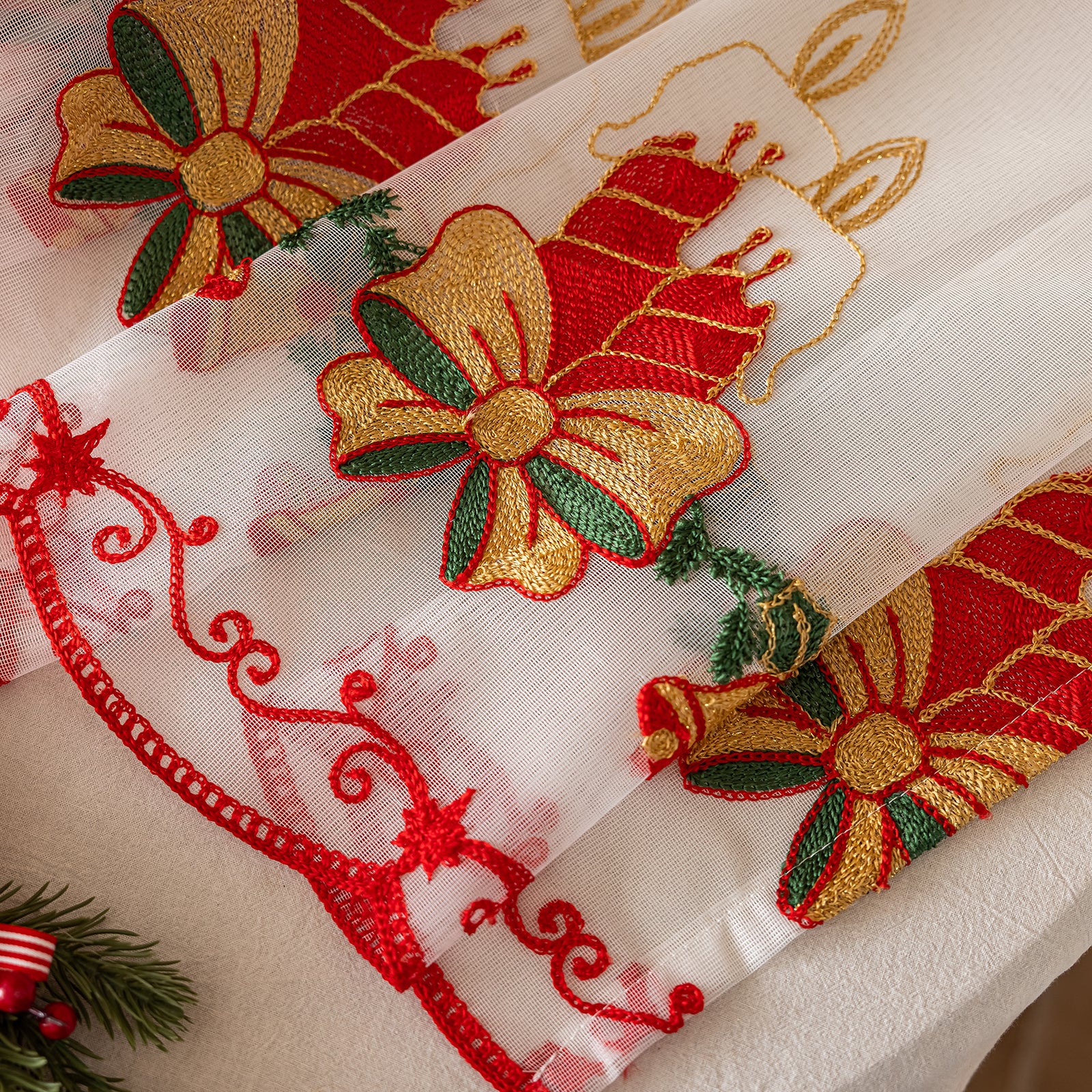 • Weiße Kurzgardine mit roter und goldener Weihnachtsstickerei