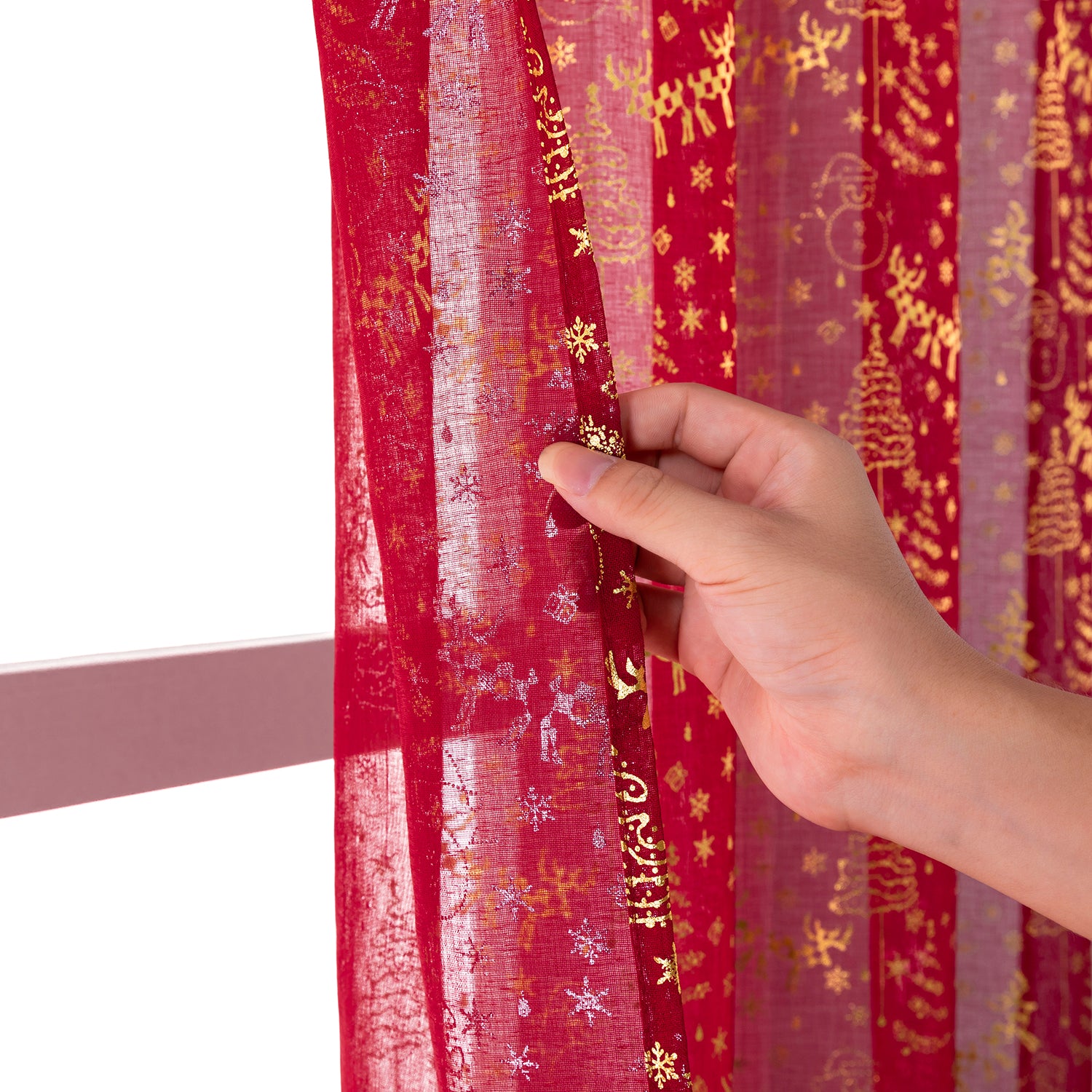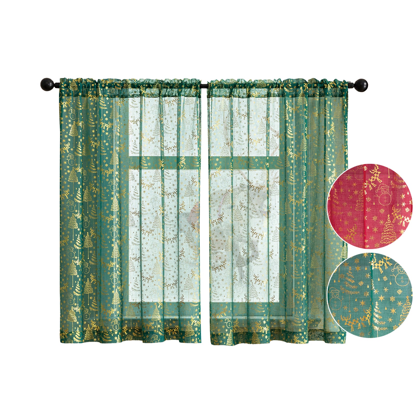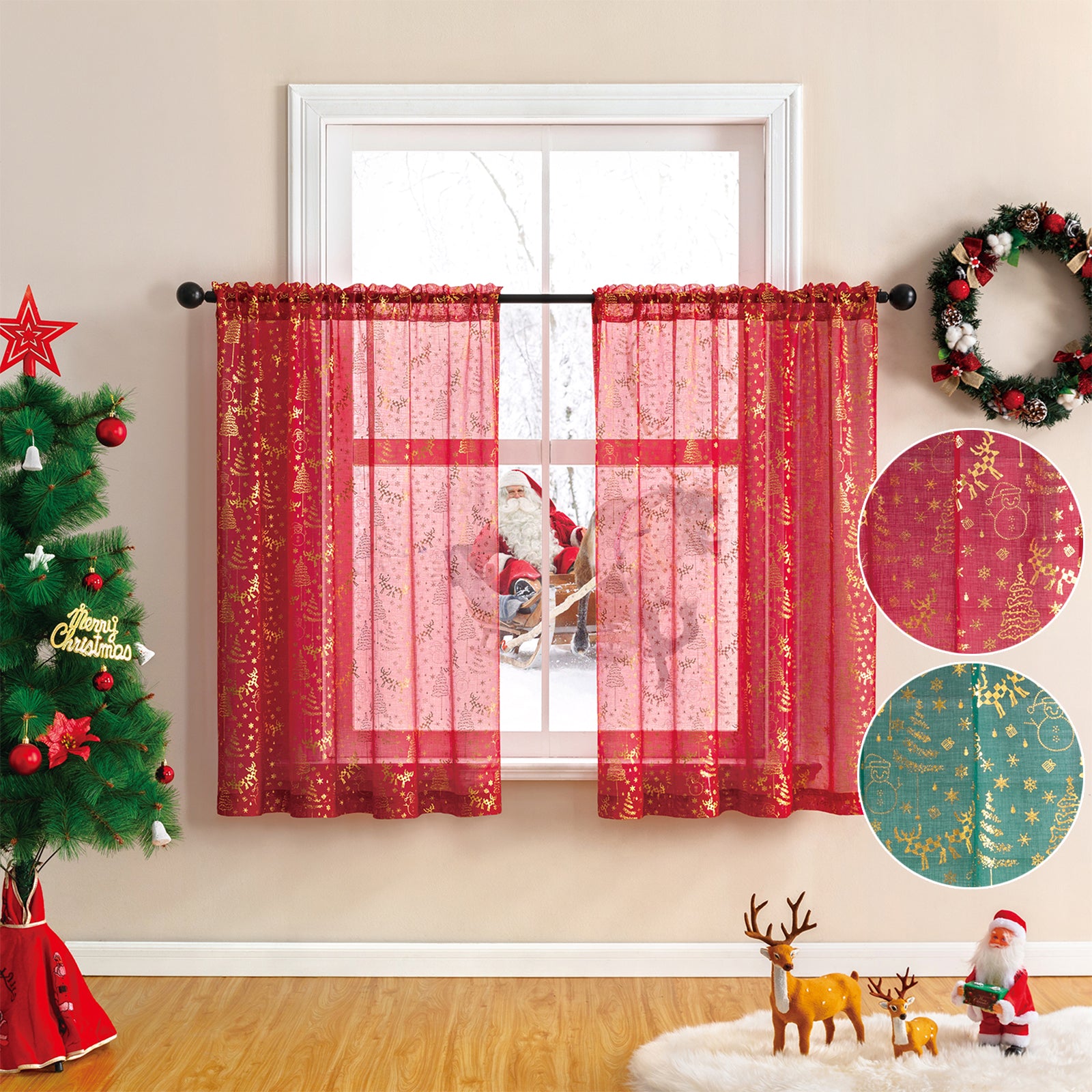Das Set enthält zwei Paneele in klassischem Rot oder Grün – ideal für Küche, Wohnzimmer, Kinderzimmer oder auch festliche Partys. Die Gardinen bringen weihnachtliche Frische und verspielte Eleganz an jedes Fenster.