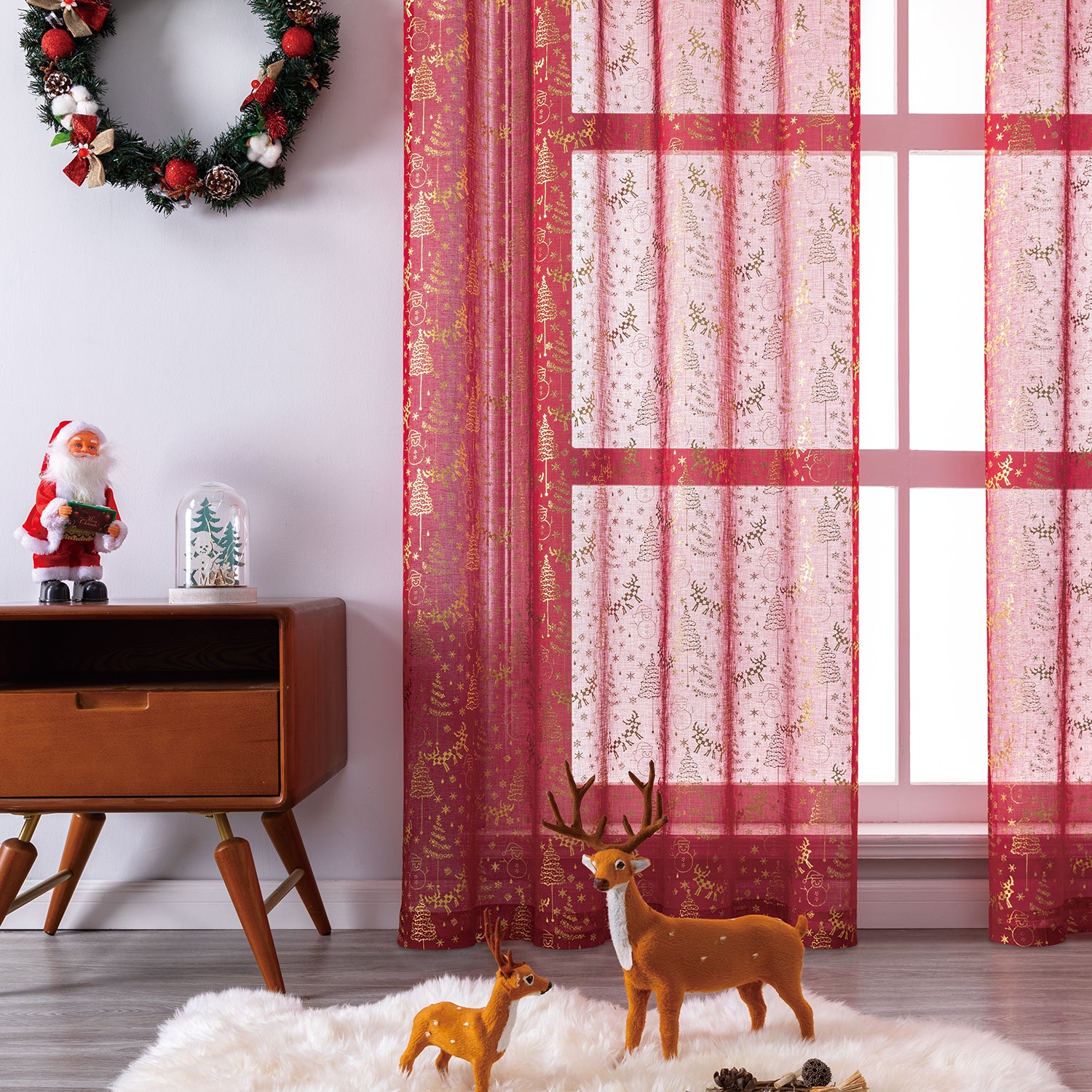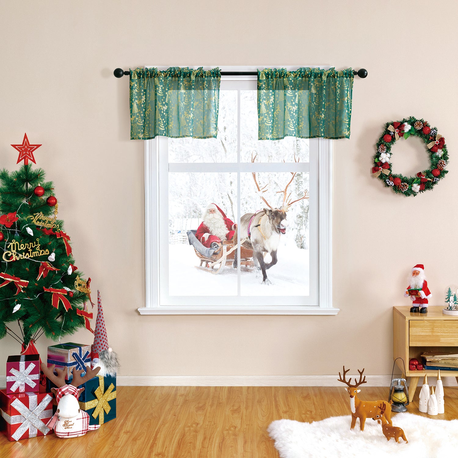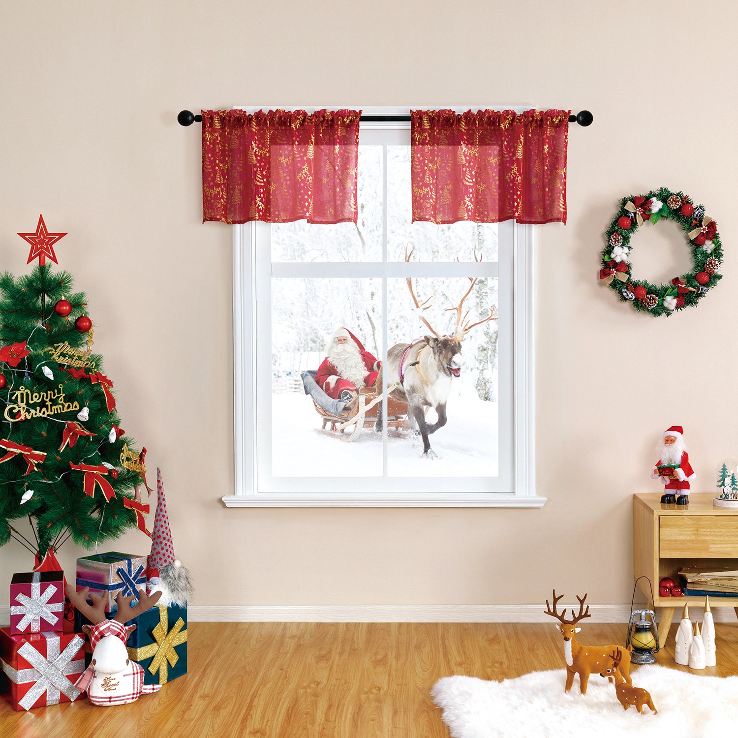 Das Set enthält zwei Paneele in klassischem Rot oder Grün – ideal für Küche, Wohnzimmer, Kinderzimmer oder auch festliche Partys. Die Gardinen bringen weihnachtliche Frische und verspielte Eleganz an jedes Fenster.