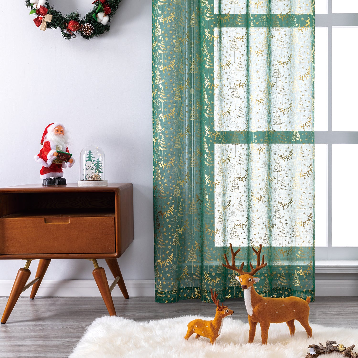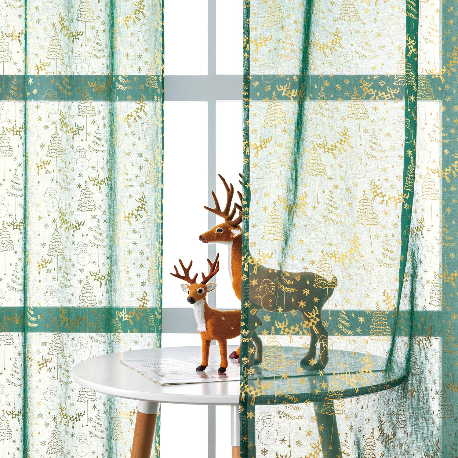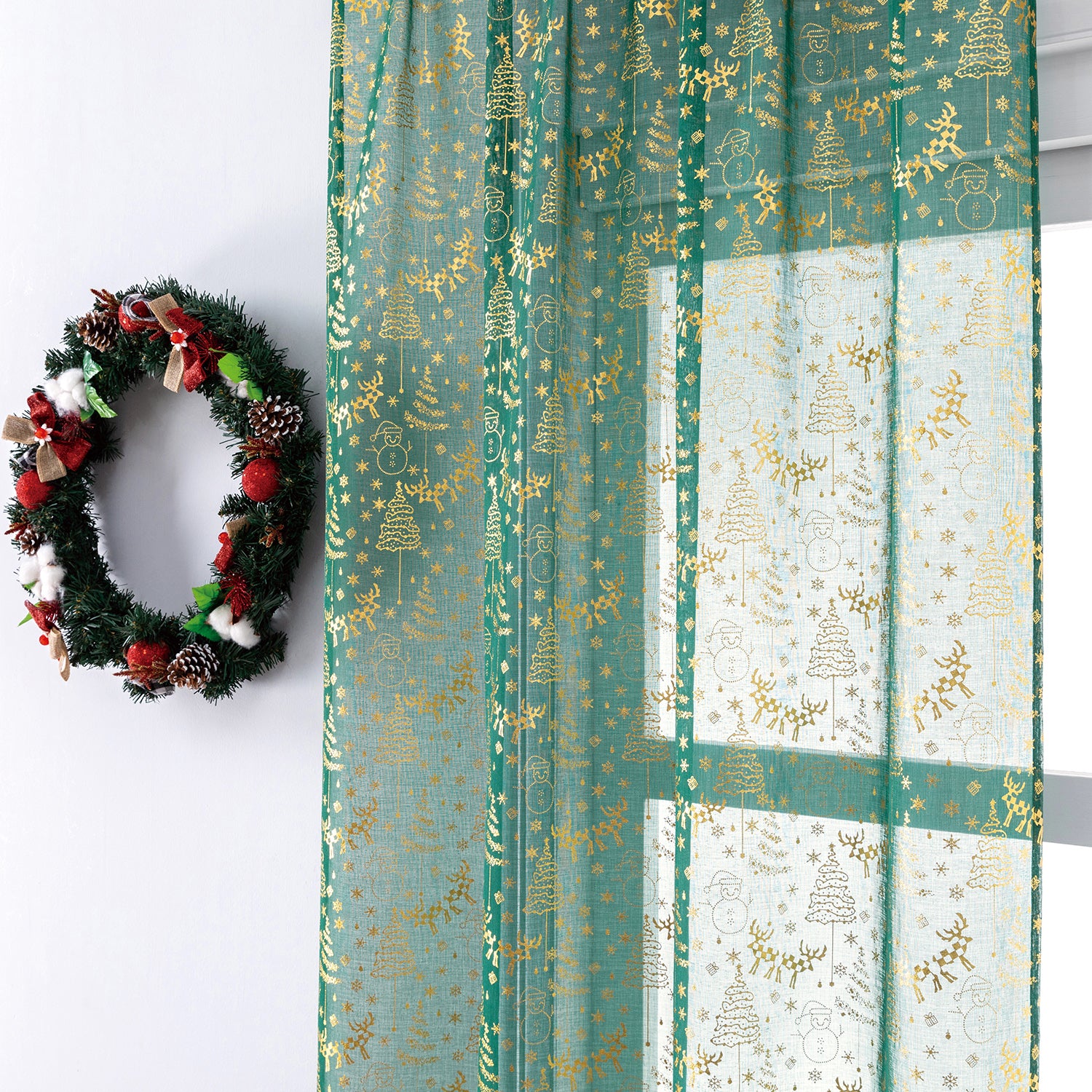 Diese festlichen Kurzgardinen mit goldglänzenden Schneeflocken-, Baum- und Weihnachtsmann-Motiven bringen sofort Weihnachtsstimmung in Ihr Zuhause. Die glänzenden Details reflektieren das Licht wunderschön und ergänzen Christbaum und Dekoration mit einem warmen, festlichen Flair.