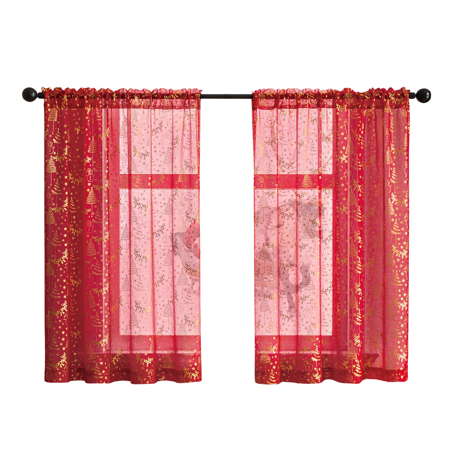 Weihnachts Kurzgardinen Goldfolie Rot oder Grün 2-teilig