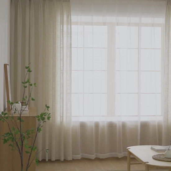 Die transparente Voile Gardine Elunor überzeugt durch ihre feine, leinenähnliche Webstruktur und eine angenehm weiche Lichtdurchlässigkeit. Sie filtert das Tageslicht sanft, ohne den Raum zu verdunkeln, und schafft eine ruhige, wohnliche Atmosphäre – ideal für moderne Wohnräume im natürlichen Stil.