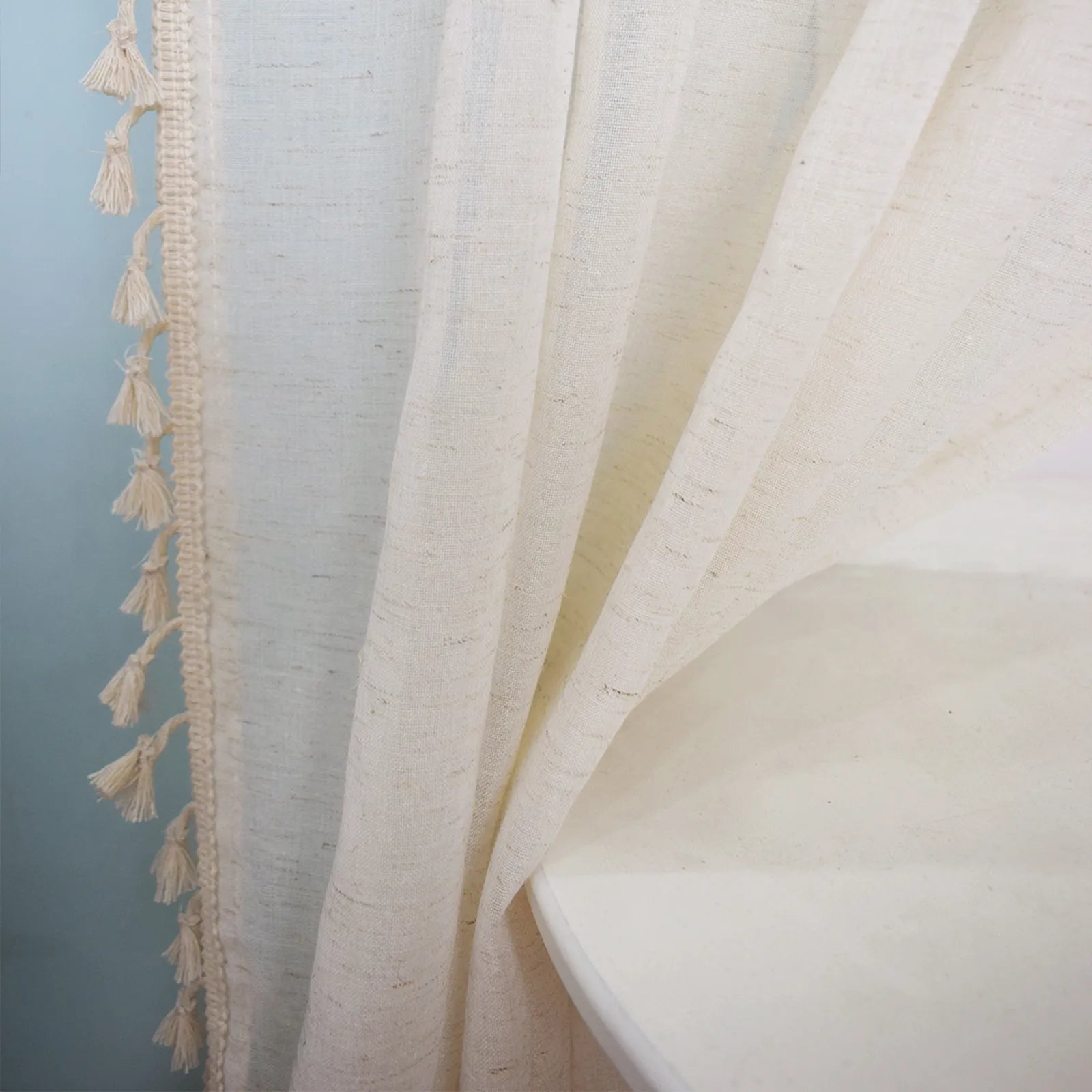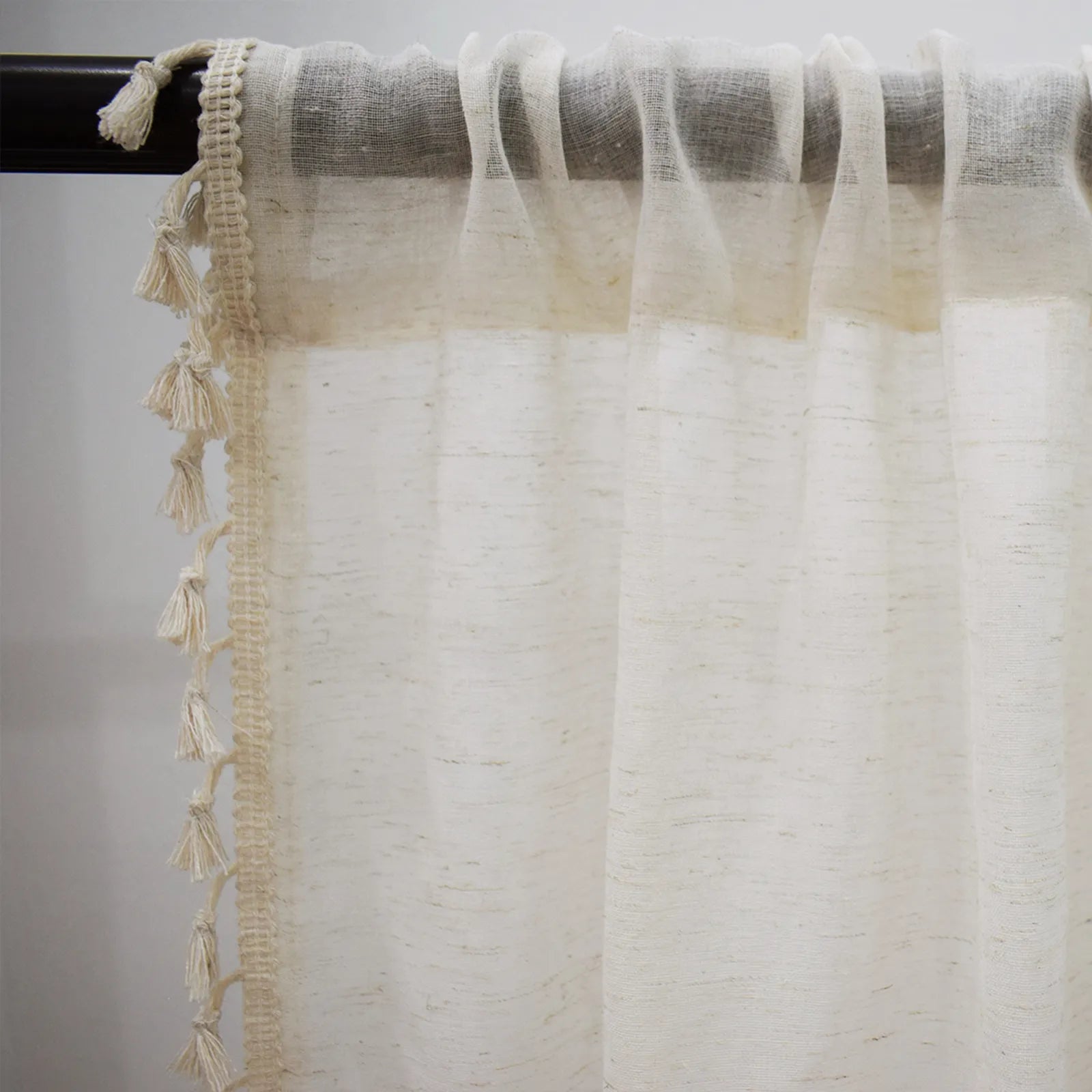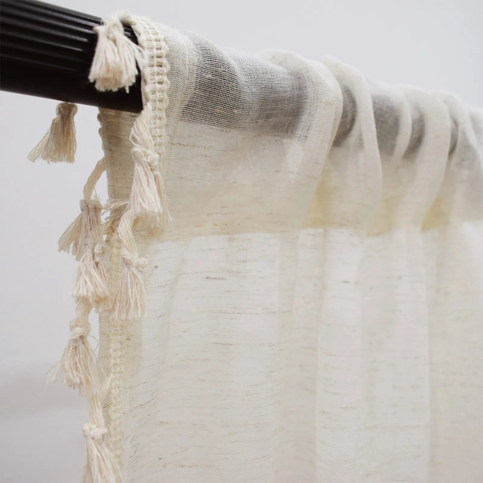 Transparente Gardine mit dekorativen Quasten im Vintage-Stil