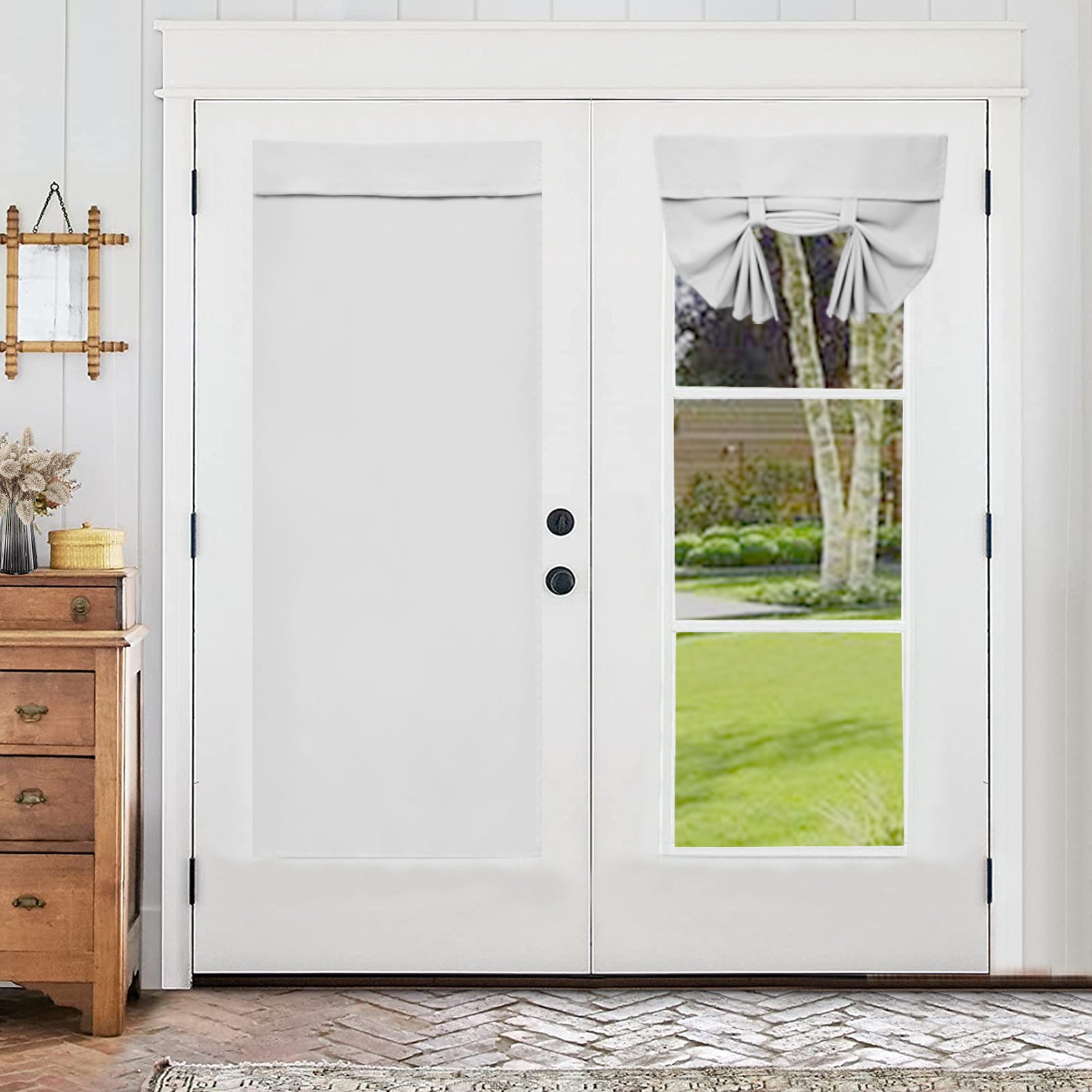 Diese verdunkelnde Türgardine mit Rafffunktion bietet optimalen Sichtschutz und sorgt zugleich für eine elegante, wohnliche Atmosphäre. Dank der selbstklebenden Rückseite lässt sie sich mühelos anbringen – ideal für französische Türen, Küchenfenster oder Schlafräume.