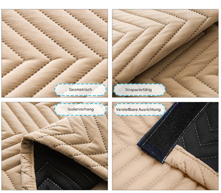 Dieses 2-teilige Set verstellbarer, gesteppter Thermo-Türvorhänge bietet optimalen Schutz vor Kälte, Zugluft und Wärmeverlust. Mit einem Gewicht von 370 g/m² und selbstklebender Befestigung sorgt es für eine effektive Isolierung und ein angenehmes Raumklima – perfekt für Winter und Sommer.