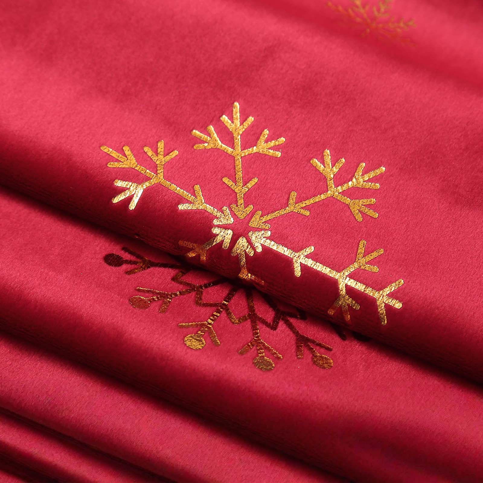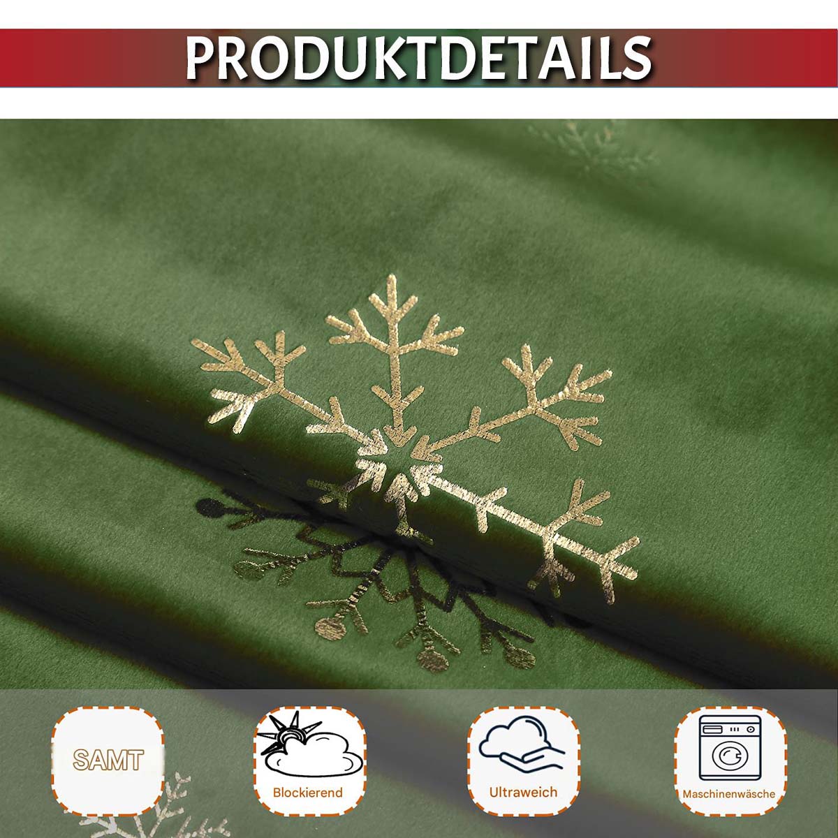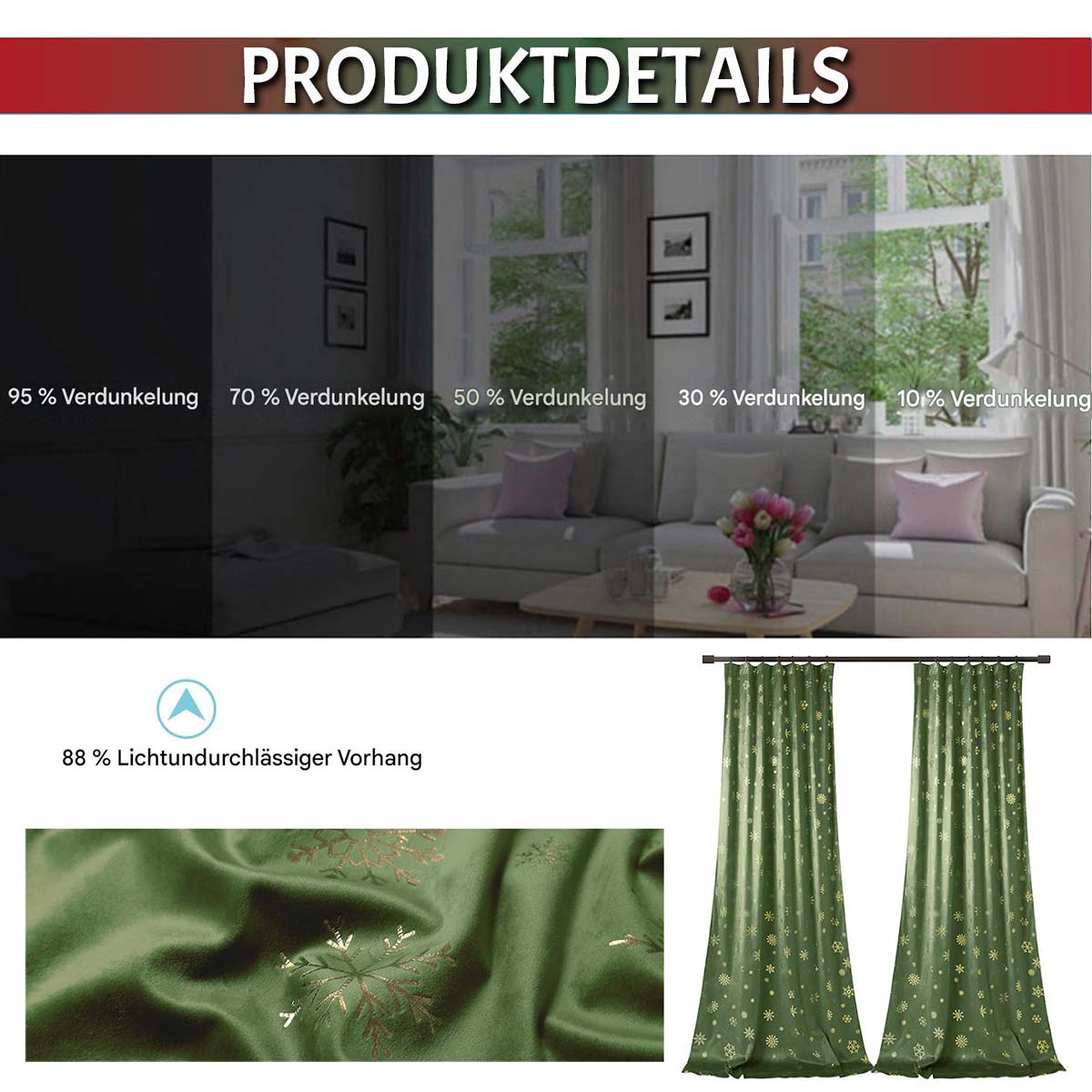 Die goldfarbenen Schneeflocken-Akzente verleihen dem Stoff einen festlichen Glanz. In Rot mit ca. 93 % Lichtblockierung oder in Grün mit ca. 88 % Lichtblockierung schützen die Vorhänge Ihre Privatsphäre und schaffen gleichzeitig eine warme, weihnachtliche Stimmung.