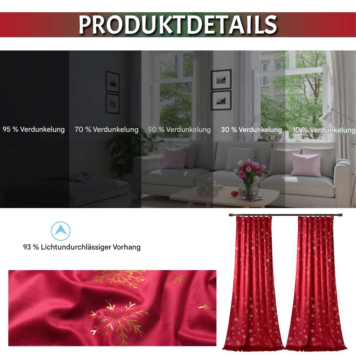 Diese luxuriösen Samtvorhänge in Weihnachtsrot oder Tannengrün verleihen Ihrem Zuhause sofort festliche Eleganz. Der weiche Samtstoff filtert das Licht sanft und sorgt für eine gemütliche Atmosphäre – ideal für Weihnachtsfeiern oder den täglichen Komfort in der Winterzeit.