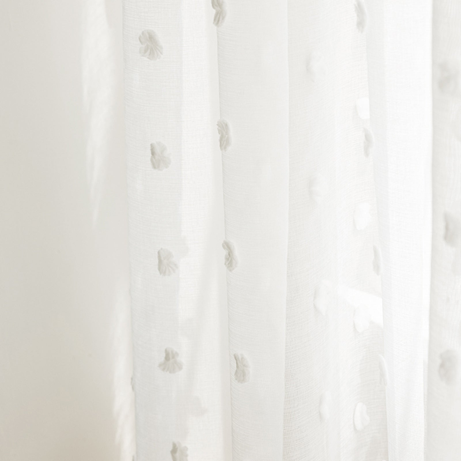 Diese weiße Boho Gardine mit dekorativen Pompoms bringt verspielte Leichtigkeit in Ihr Zuhause. Der zarte Voile-Stoff fällt weich und lässt Tageslicht sanft durchscheinen, während er zugleich ein angenehmes Maß an Privatsphäre bietet. Ideal für Wohnzimmer, Schlafzimmer oder festliche Anlässe wie Hochzeiten und Partys.