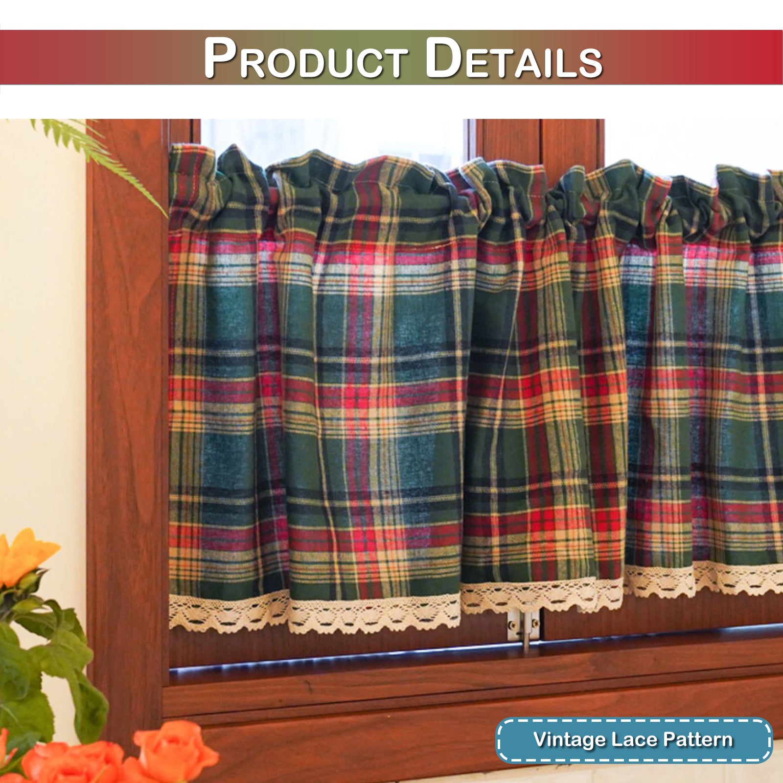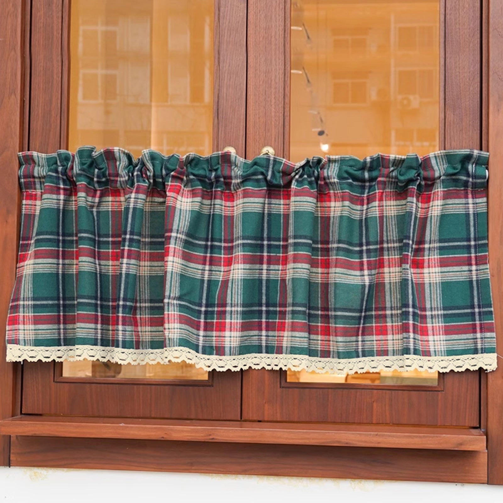 Diese weihnachtliche Kurzgardine im klassischen Karomuster bringt festliche Stimmung in Ihre Küche, Ihr Wohnzimmer oder den Eingangsbereich. Der Vintage-Boho-Stil mit grünem Design passt perfekt zu Weihnachtsdekorationen und sorgt für ein gemütliches, traditionelles Ambiente.