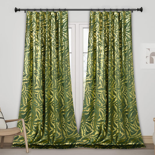 Samt Weihnachtsvorhänge mit Blatt-Goldfolie · Verdunkelung · Rot/Grün · 2-teilig