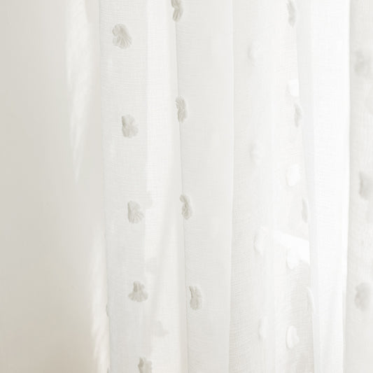 Boho Gardine mit Pompoms · Weiß · Halbtransparent