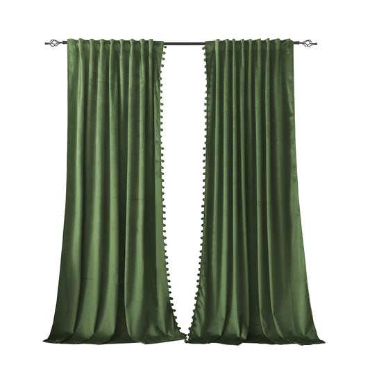 Weihnachts Samtvorhänge mit Pompoms 2-teilig Rot oder Grün