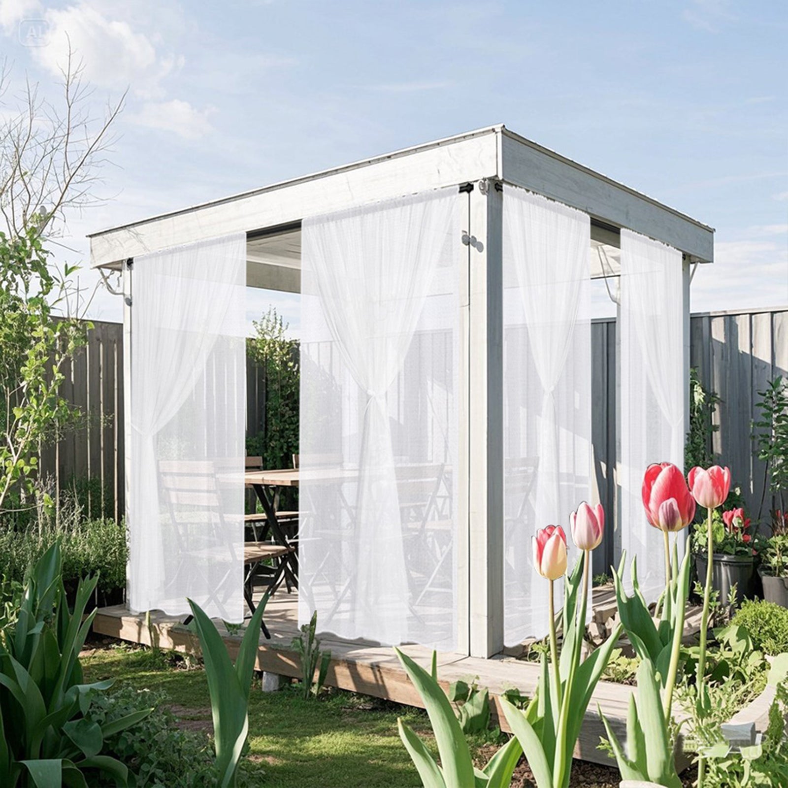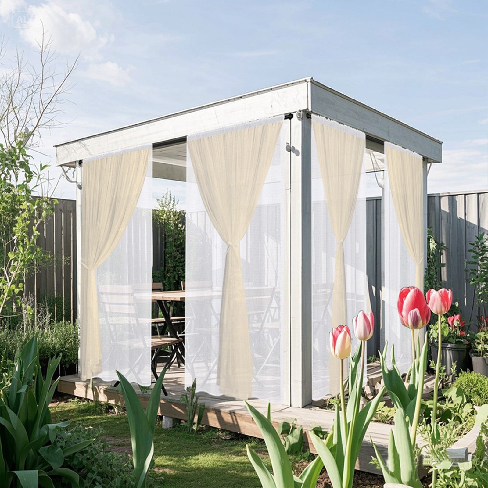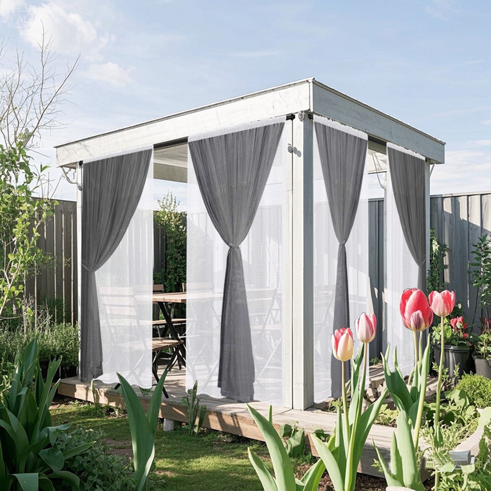 Diese zweilagige Outdoor Gardine kombiniert Funktionalität mit einem eleganten Look für Terrasse, Balkon oder Innenräume. Die äußere Lage besteht aus einem wasserabweisenden Voile, die innere Lage aus einem feinen Moskitonetz. So genießen Sie Privatsphäre, Schutz vor Insekten und ein luftiges Ambiente – perfekt für entspannte Abende im Freien.