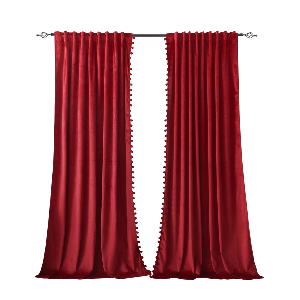 The set includes two panels, each decorated with playful 2.5 cm pompoms on one side. The pompoms add a cheerful accent without detracting from the elegant effect of the velvet.