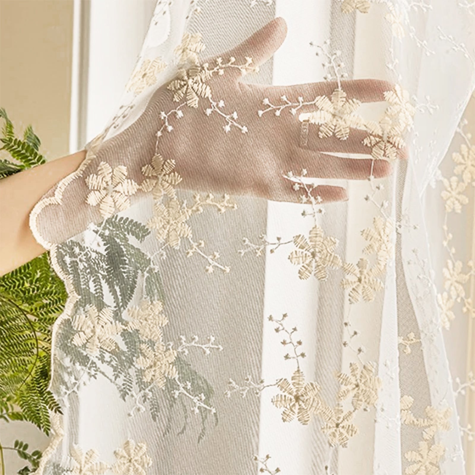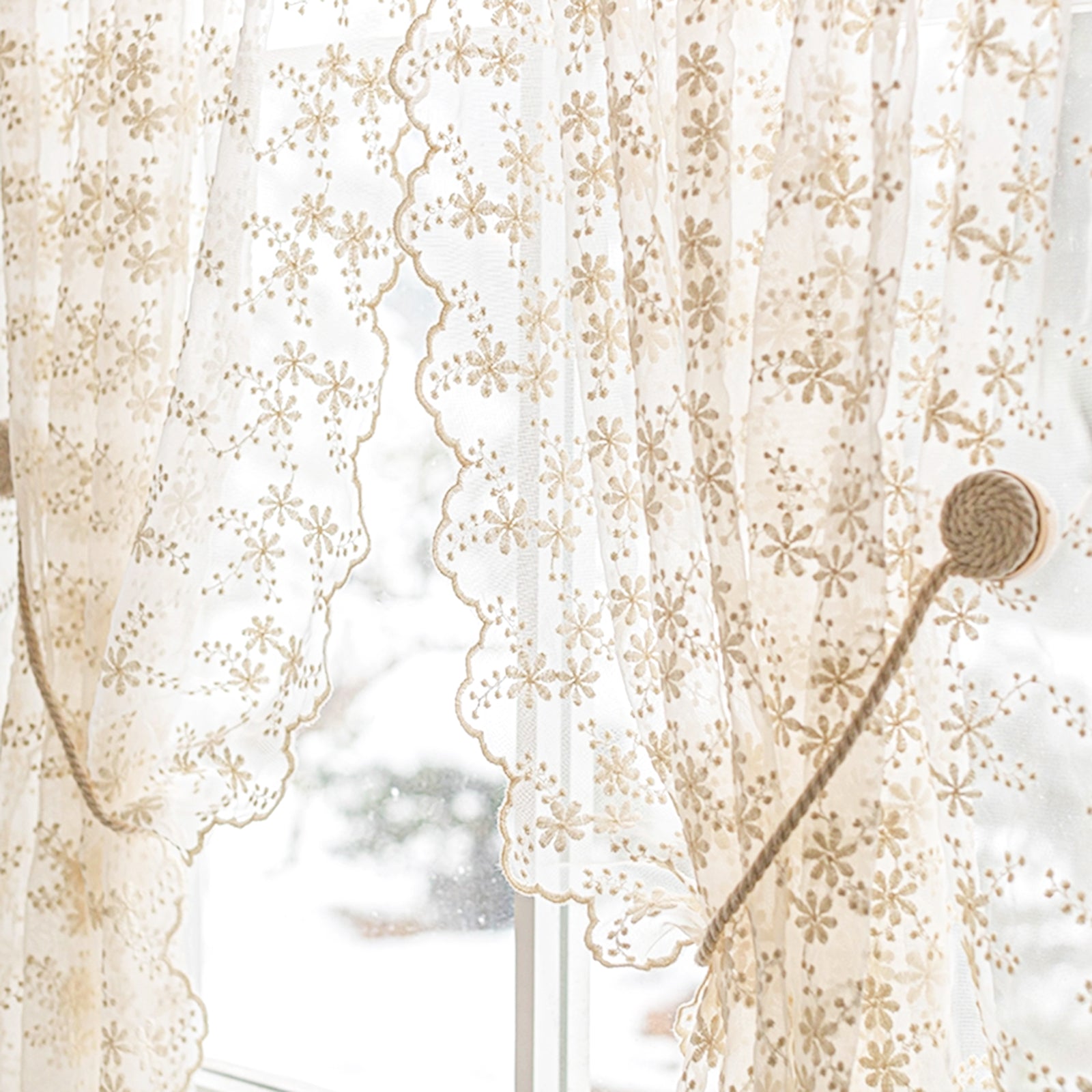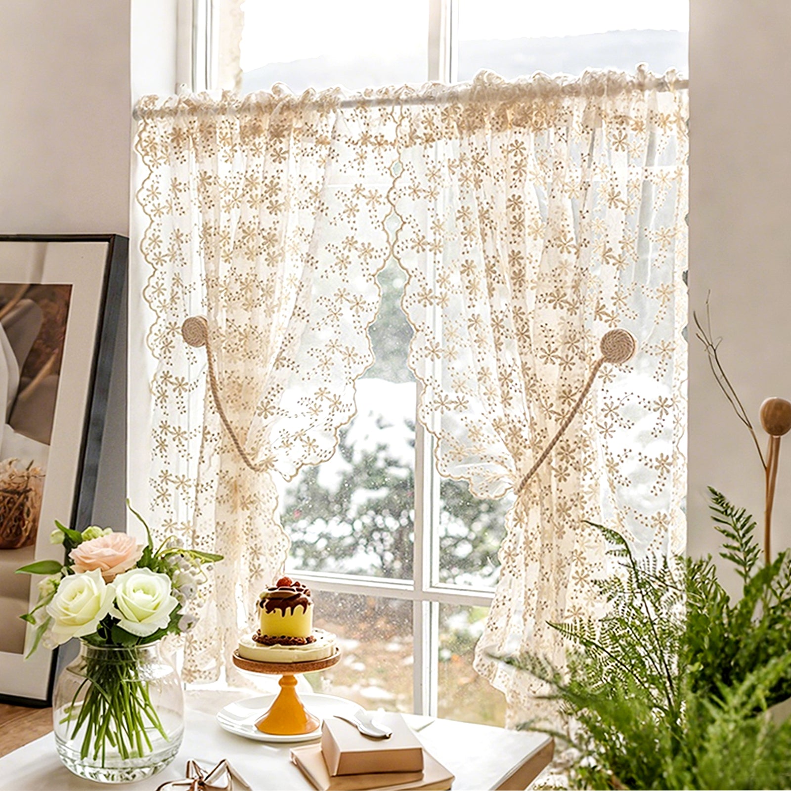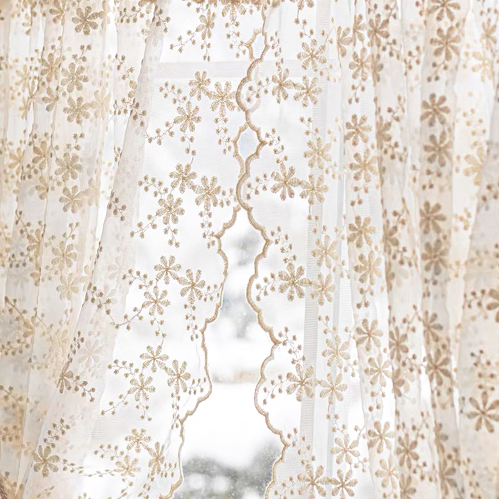 This two-piece set of white, embroidered curtains brings a delicate, romantic atmosphere to your home. The semi-transparent fabric panels gently let in light, creating a cozy atmosphere, and are ideal for living rooms, bedrooms, children's rooms, or festive occasions such as weddings and parties.