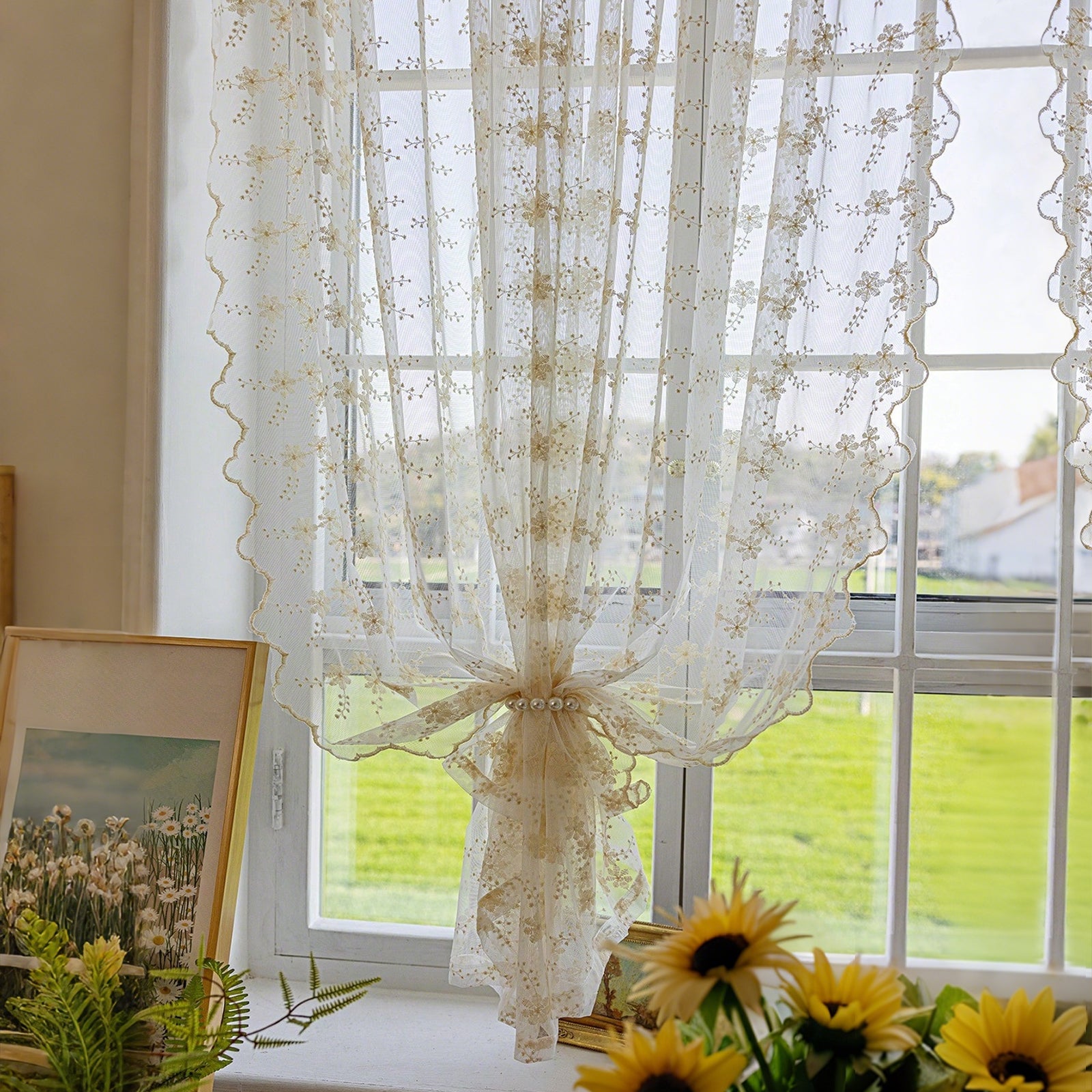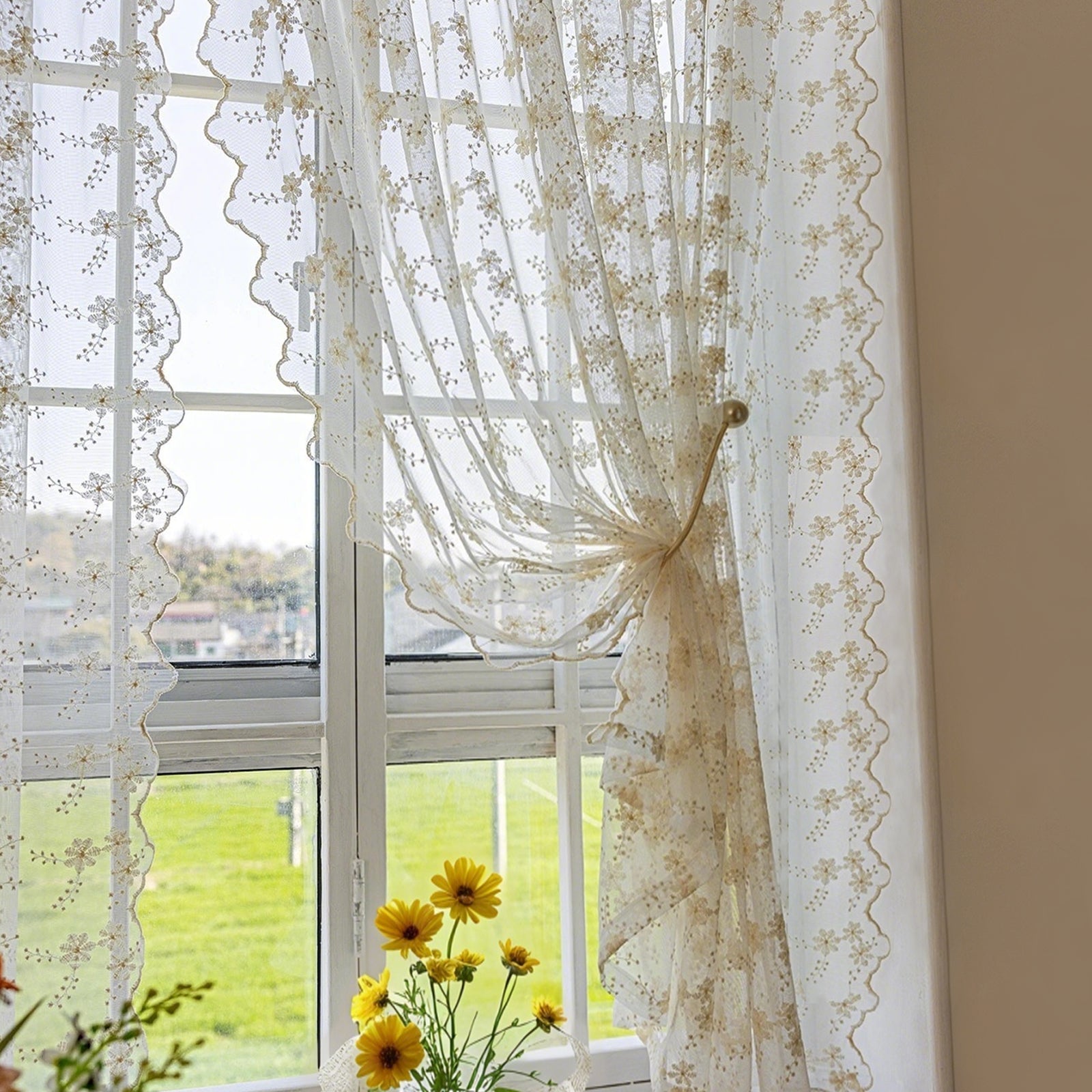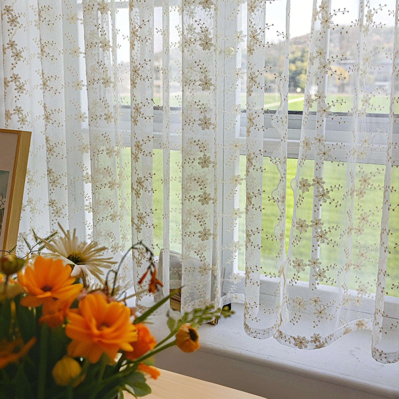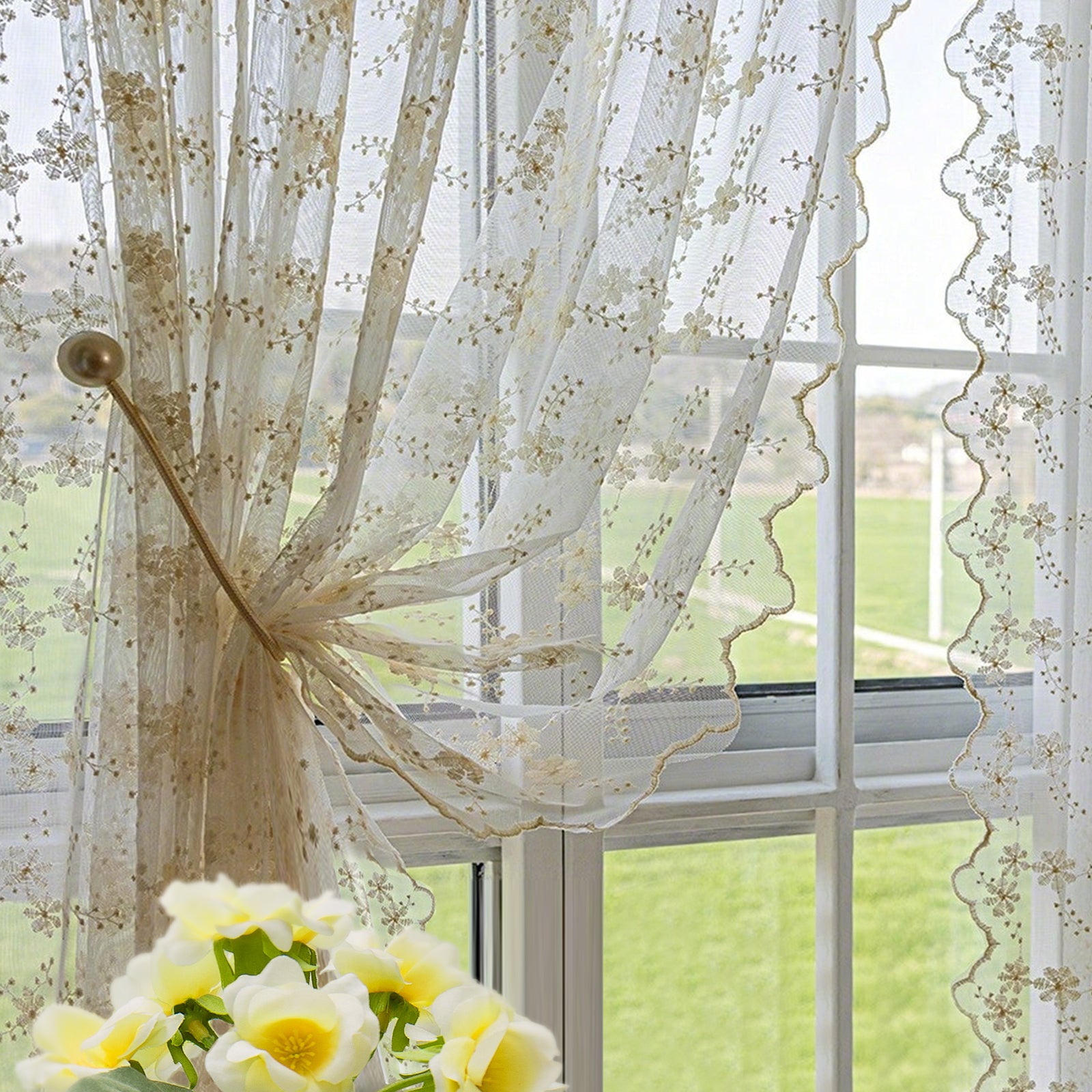 This two-piece set of white, embroidered curtains brings a delicate, romantic atmosphere to your home. The semi-transparent fabric panels gently let in light, creating a cozy atmosphere, and are ideal for living rooms, bedrooms, children's rooms, or festive occasions such as weddings and parties.