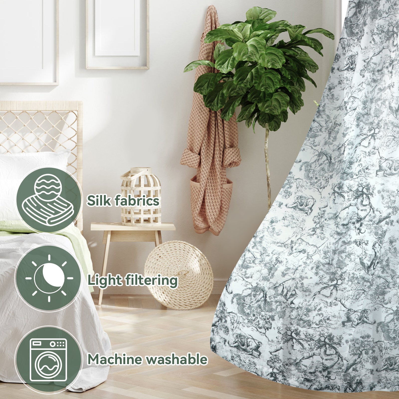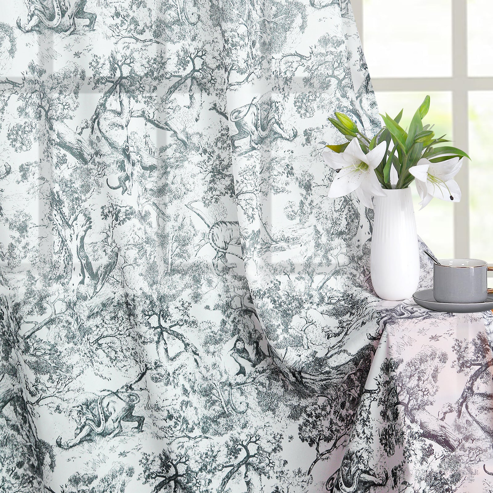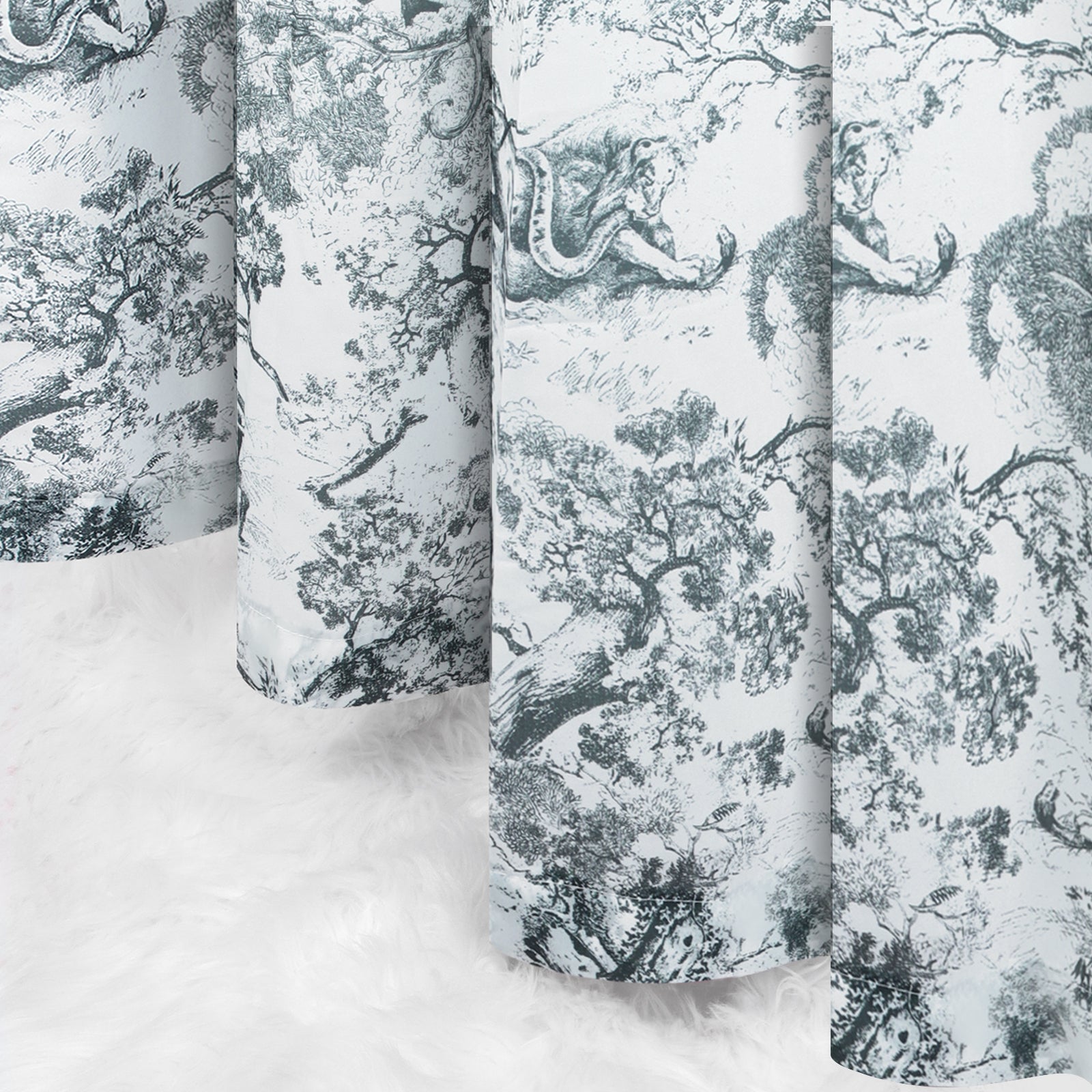 The Jungle Printed Sheer Curtain in Charcoal Grey adds a natural and fresh atmosphere to your home. The lightweight brocade cotton fabric gently filters daylight while adding an artistic touch to your rooms.