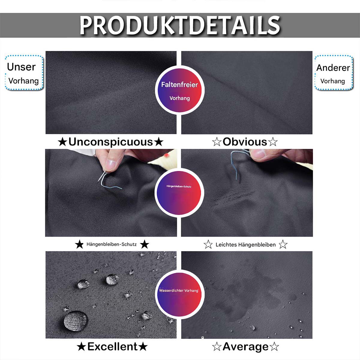 The extra-wide curtain is the perfect solution for covering large areas in style and functionality. At 254 cm wide, it's ideal as a room divider, door or window decoration, and for outdoor use. Made of 100% polyester, it impresses with its waterproof, durable surface and provides approximately 50 to 70% light reduction, as well as reliable privacy.