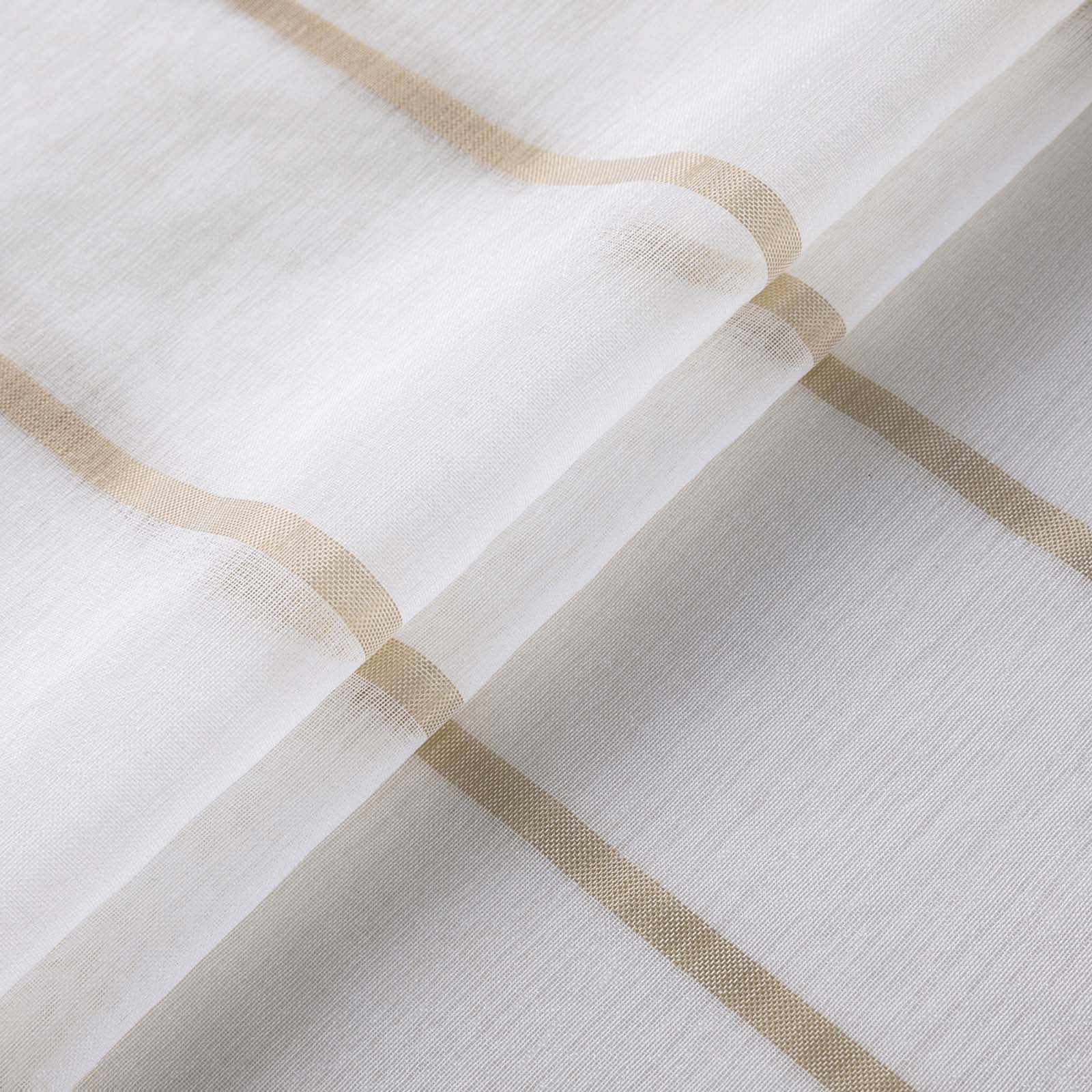 This sheer curtain with a striped pattern brings lightness and stylish elegance to your home. Crafted from high-quality polyester with a linen texture, it is semi-transparent, soft, and durable. The subtle striped design creates a modern look and allows daylight to gently filter into the room while maintaining privacy.