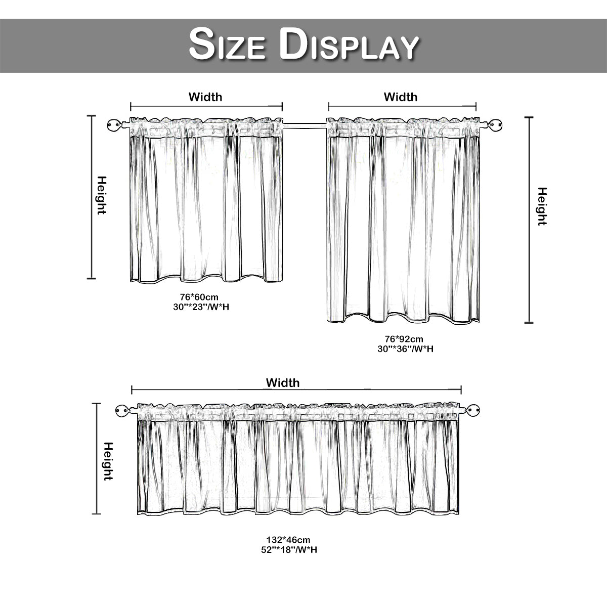 - Measure the width: rod/rail length for pleated models or rod length for models with rod pocket/loop attachment.