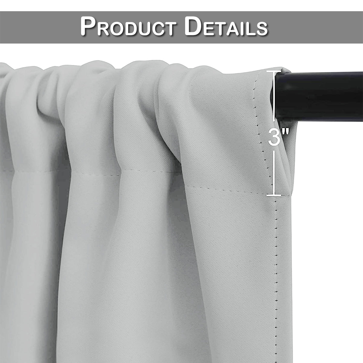 Suspension: Rod Pocket (up to 7.5 cm rod pocket)