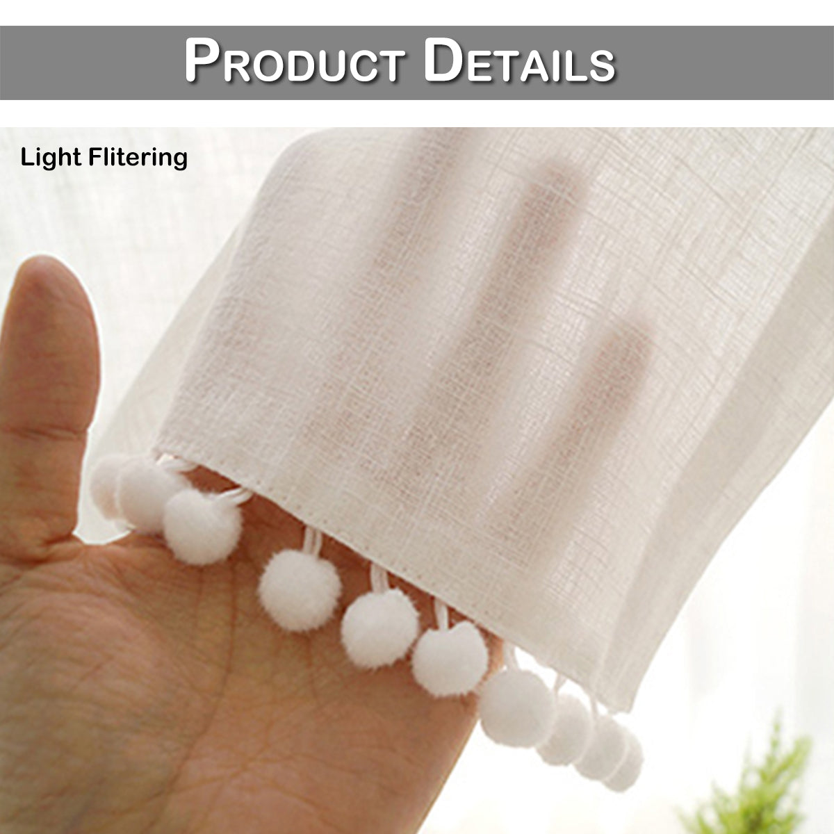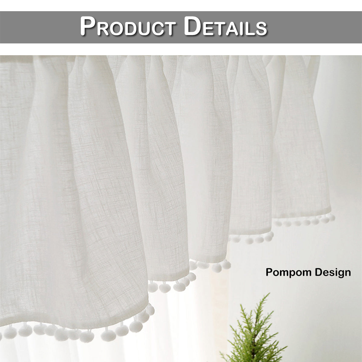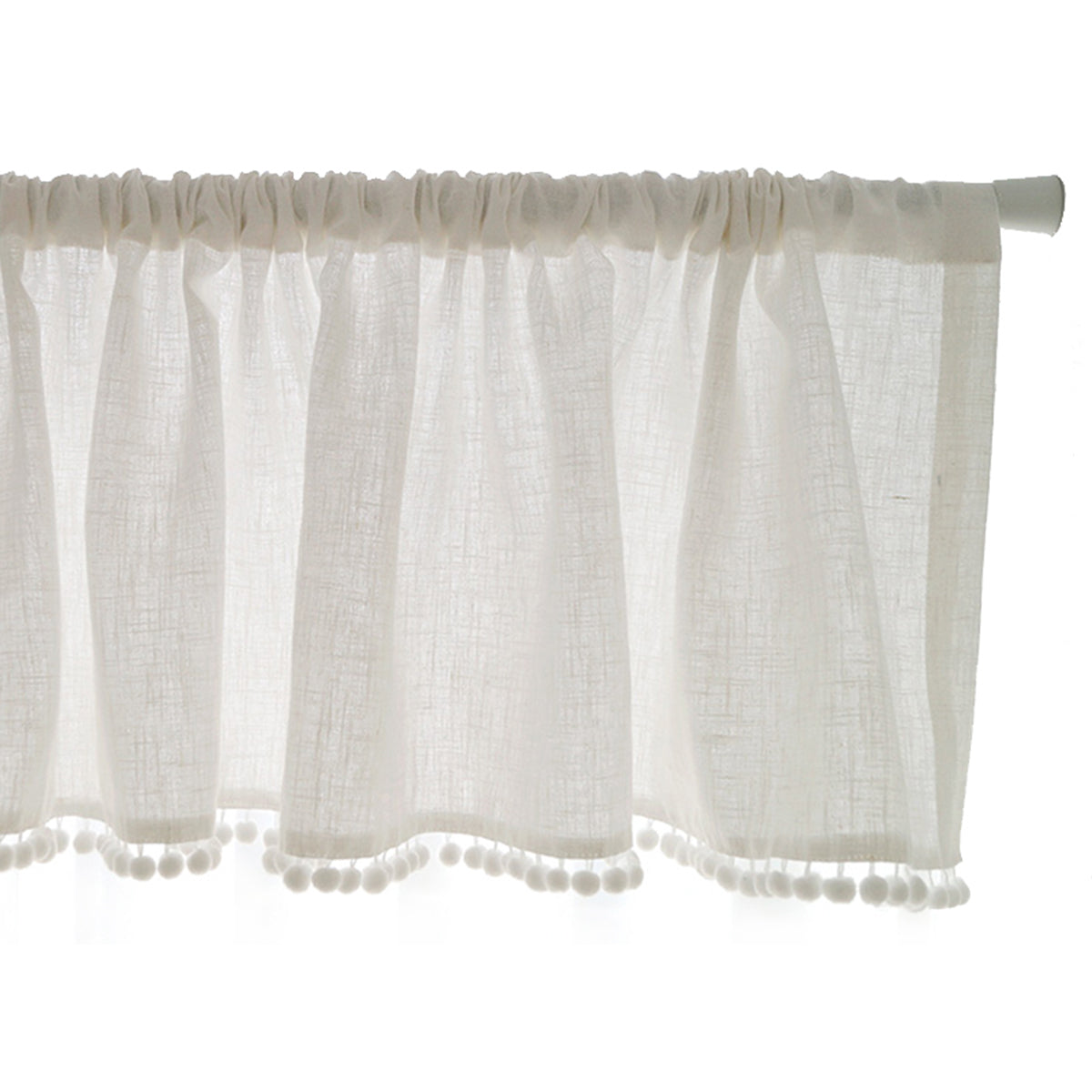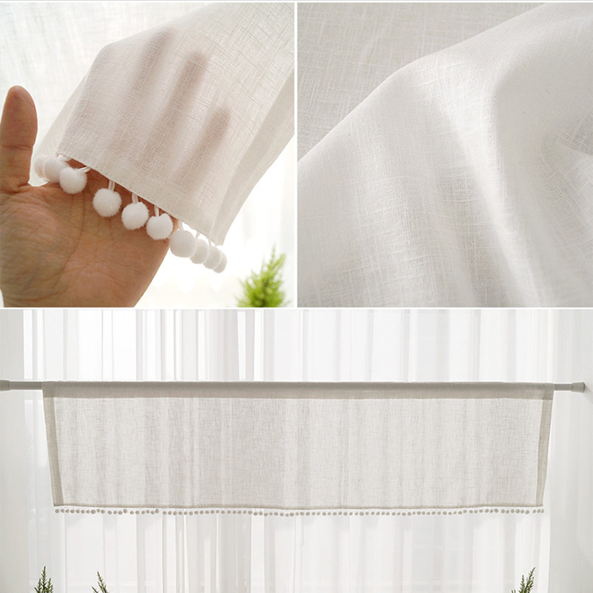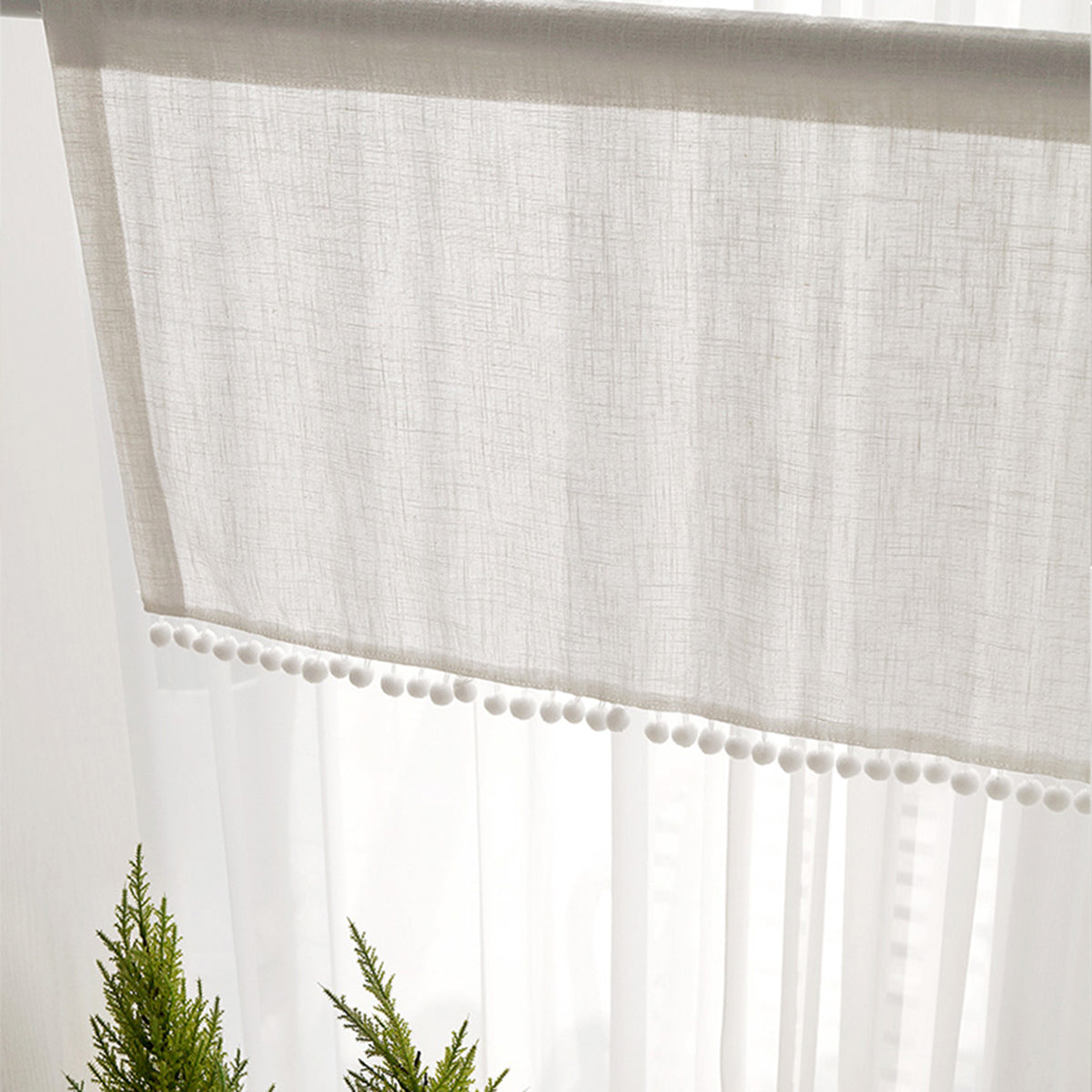 This sheer short curtain with decorative pompoms brings fresh boho charm to your home. The lightweight voile fabric with a linen look gently filters daylight, creating a bright and welcoming atmosphere while also providing pleasant privacy.