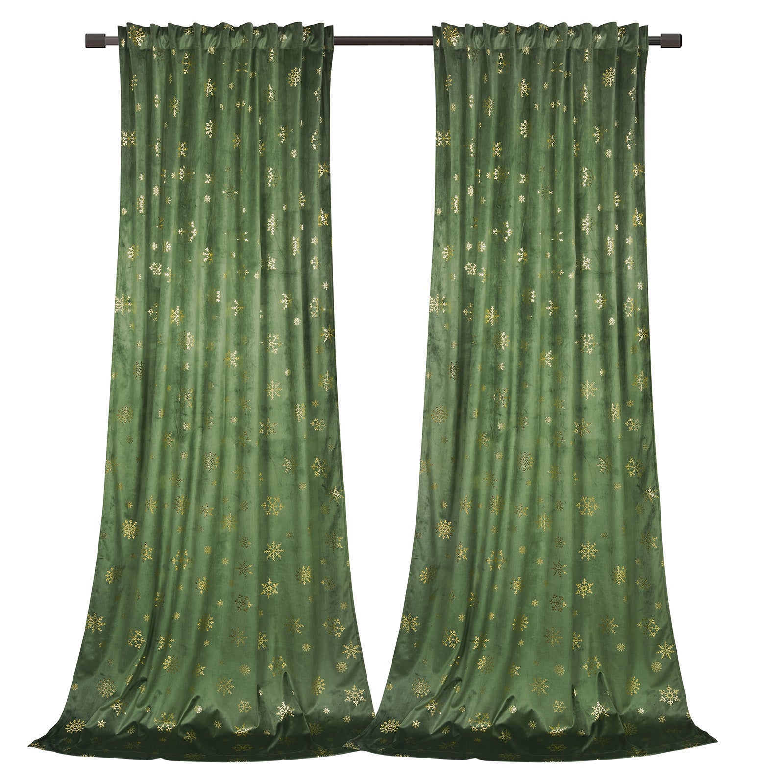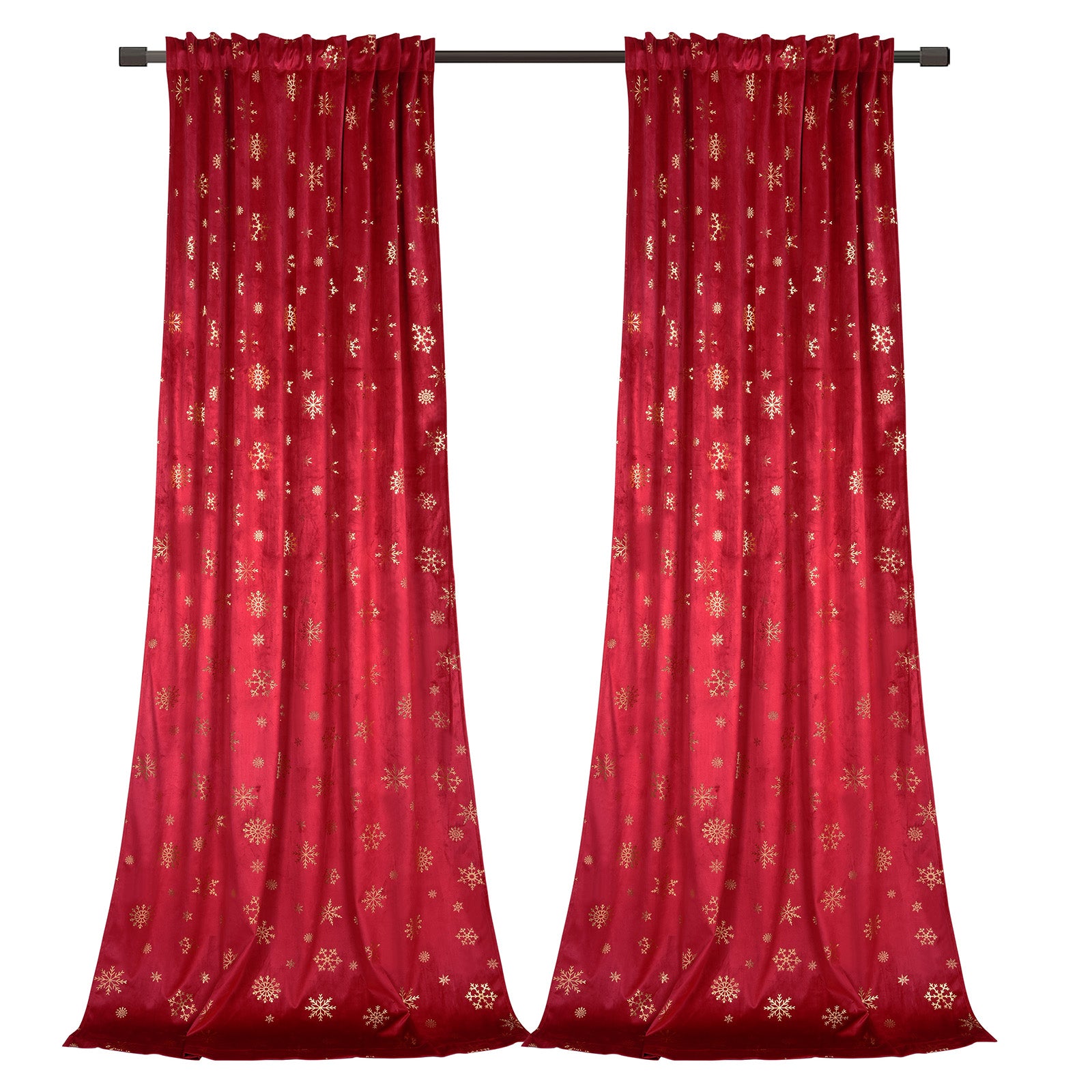 Christmas velvet curtains with gold foil snowflakes 2-piece red or green