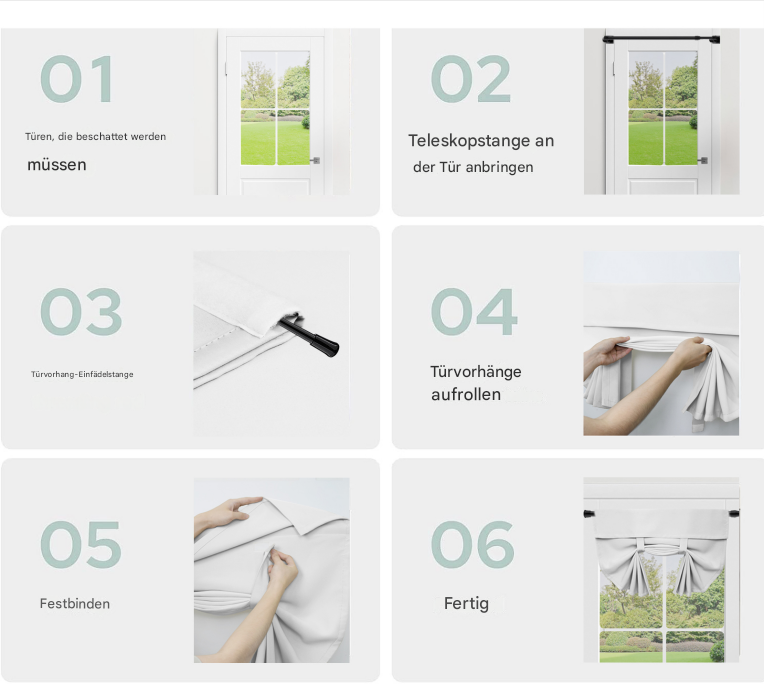This blackout door curtain with a pleated function offers optimal privacy while creating an elegant, homely atmosphere. Thanks to the self-adhesive backing, it's easy to install—ideal for French doors, kitchen windows, or bedrooms.
