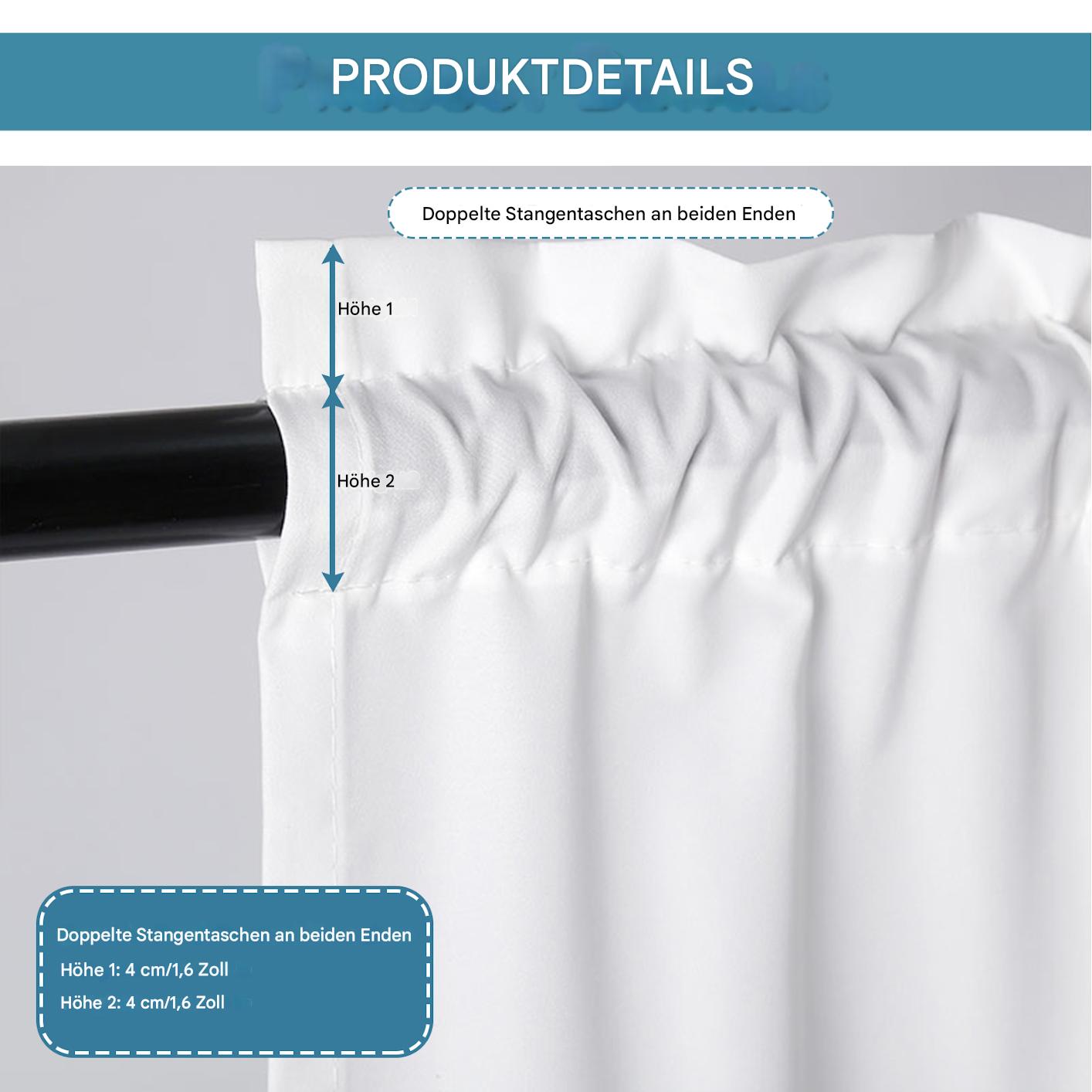 We recommend 1.5 to 2 times the fabric width of the rail/rod width. For example, a 200 cm long rod requires approximately 300–400 cm of curtain fabric for an elegant curtain.