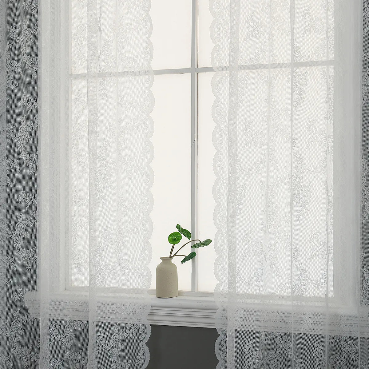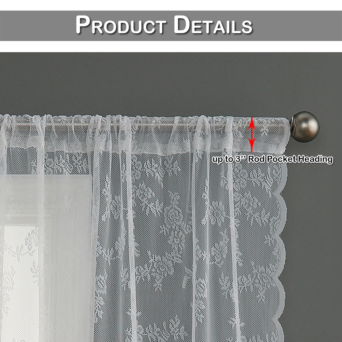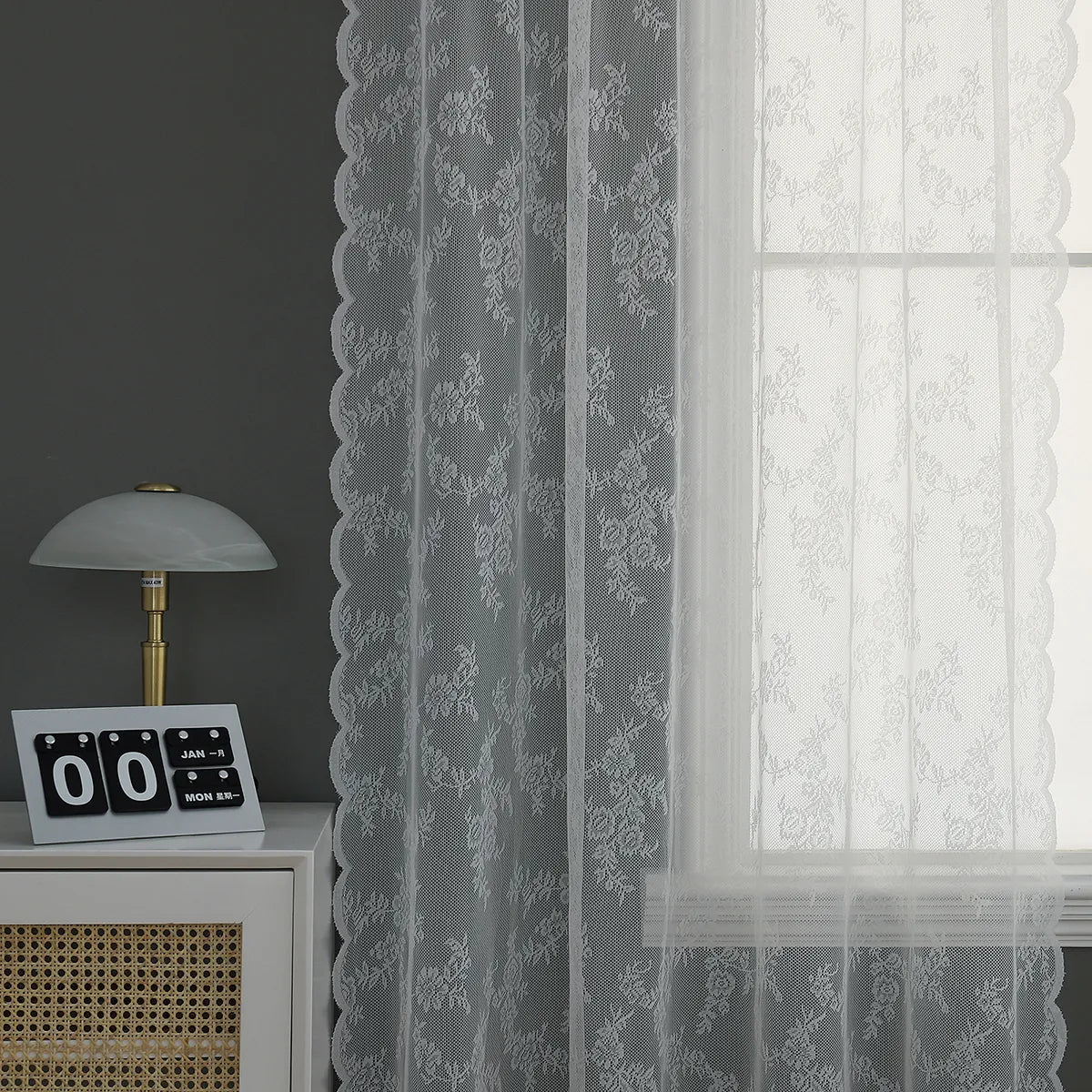 Home Ready-made curtains Immediately available and stylish Sheer Floral Curtain – Lace, White, Rod Pocket