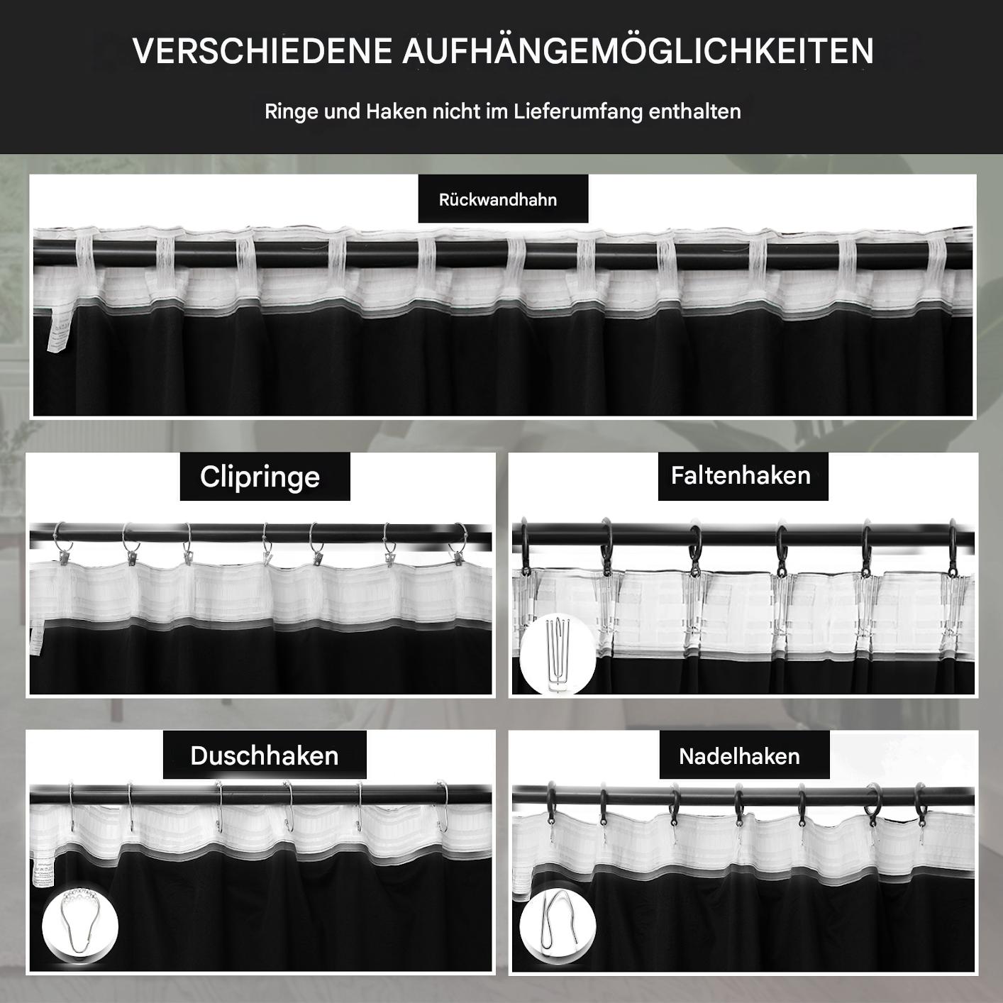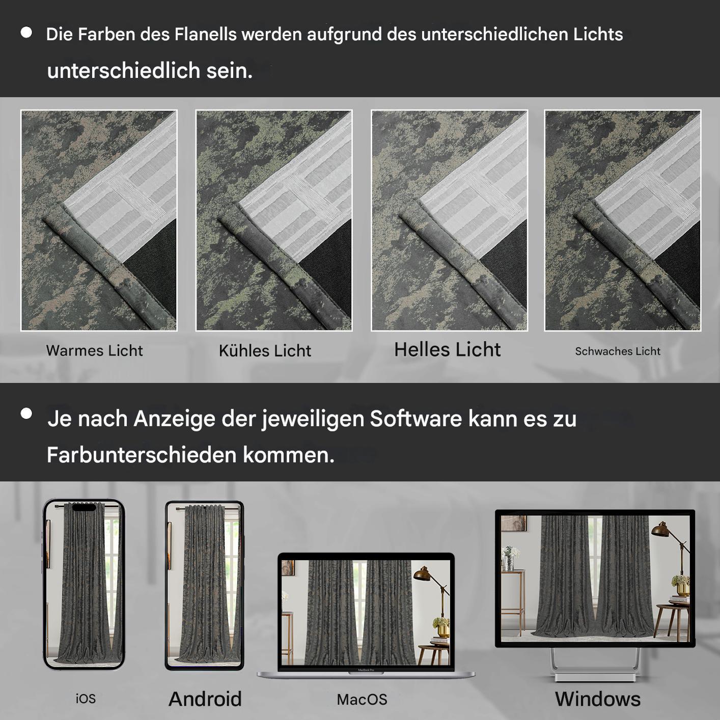 The gold foil print adds a glamorous touch to the curtain, making it a decorative highlight in any room. Thanks to the multifunctional hanging system, the curtain can be flexibly hung with loops, rings, or hooks—suitable for all standard curtain rods and track systems.