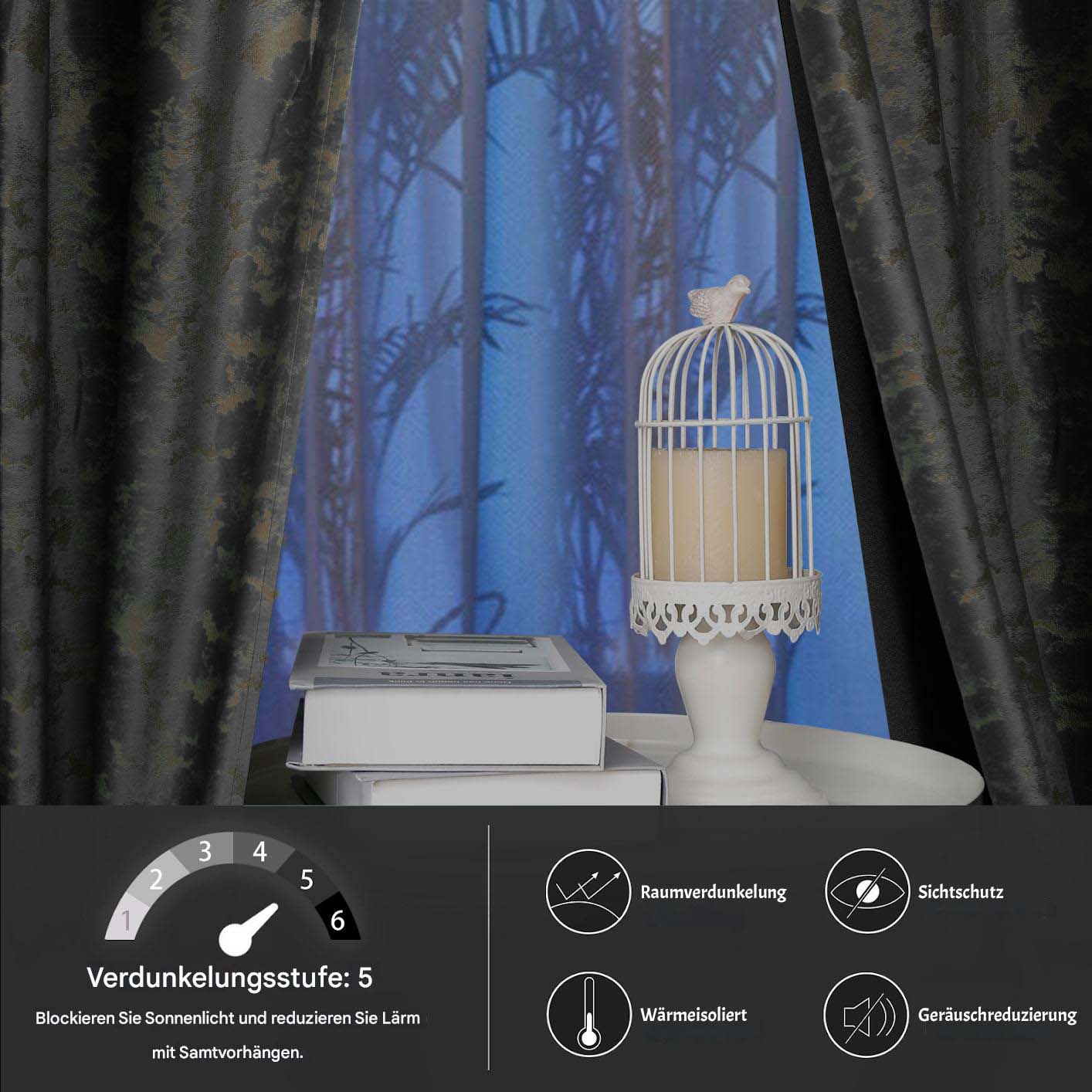Home Ready-made curtains Immediately available and stylish Set of 2 velvet curtains blackout with gold print heat protection