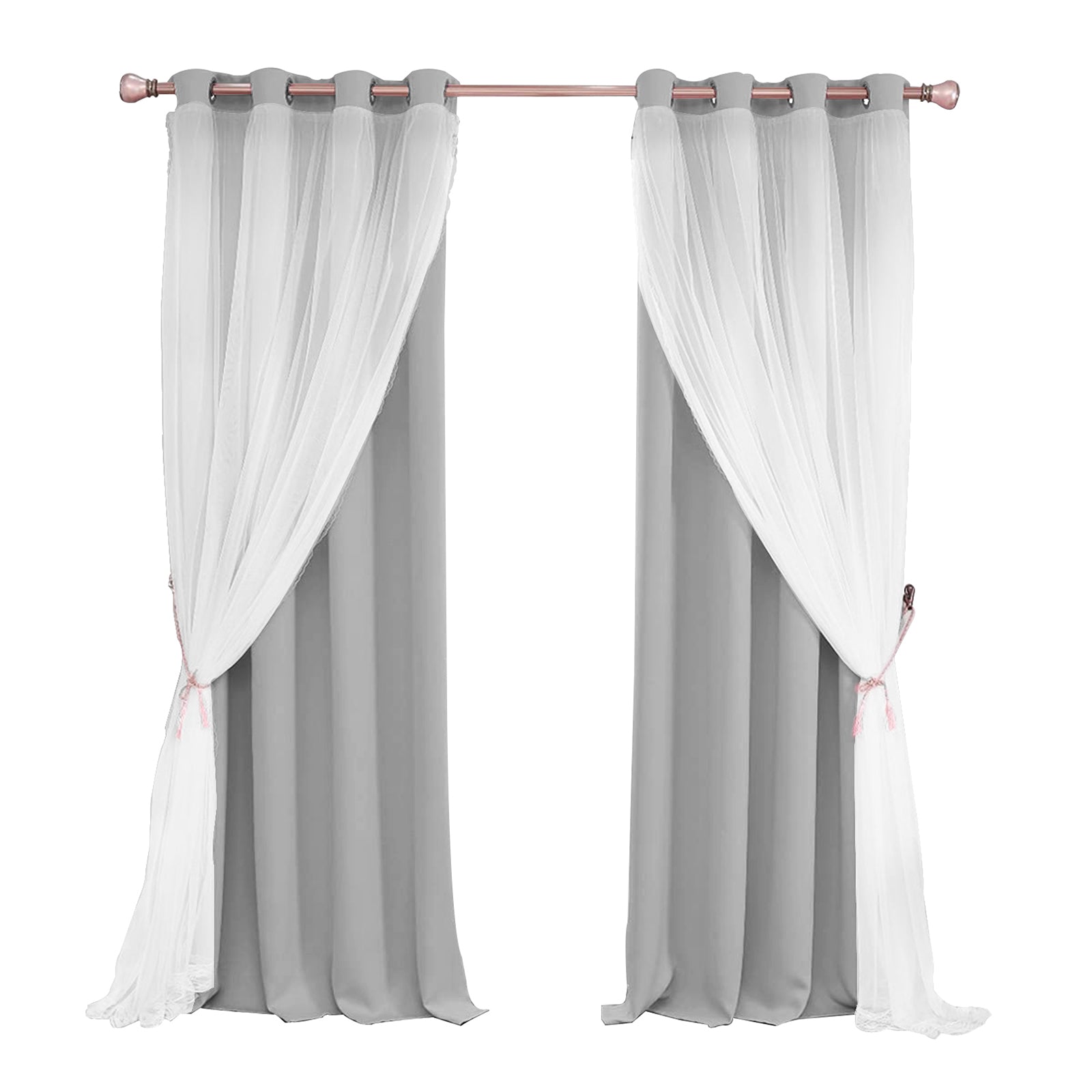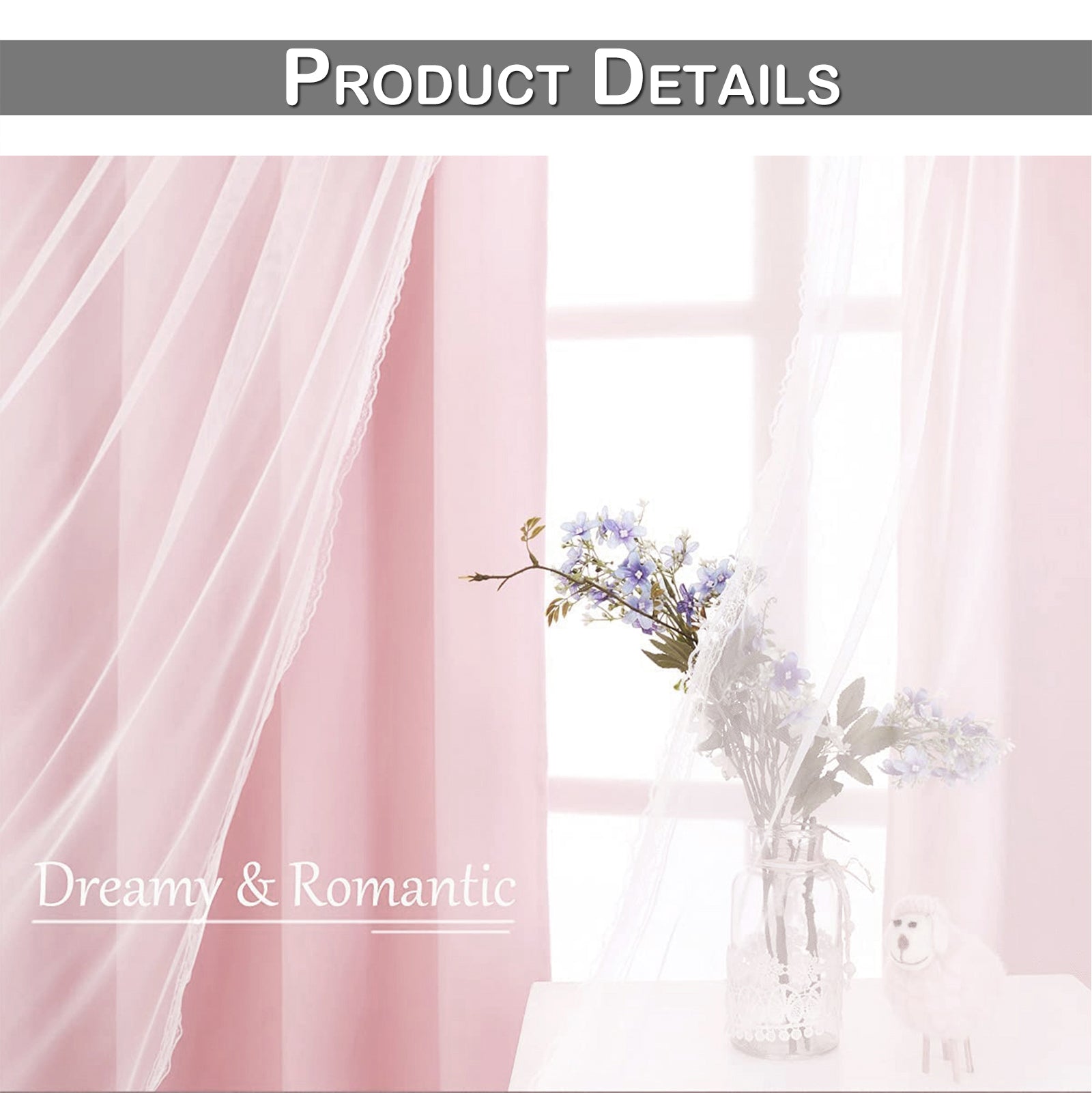 This stylish blackout curtain combines functionality with romantic elegance. The two-layer construction of dense polyester and a sheer voile overlay lends a playful, light touch to the room, making it ideal for children's rooms, teen rooms, or even bedrooms with a romantic feel.