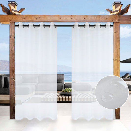 Outdoor Curtain Voile White Windproof and Water-repellent with Eyelets at the top and bottom 1 Panel