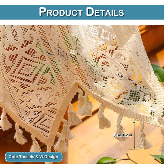 Vintage short curtain with tassels – Boho style, cream, rod pocketRegular price €22,00 EURRegular priceUnit price per