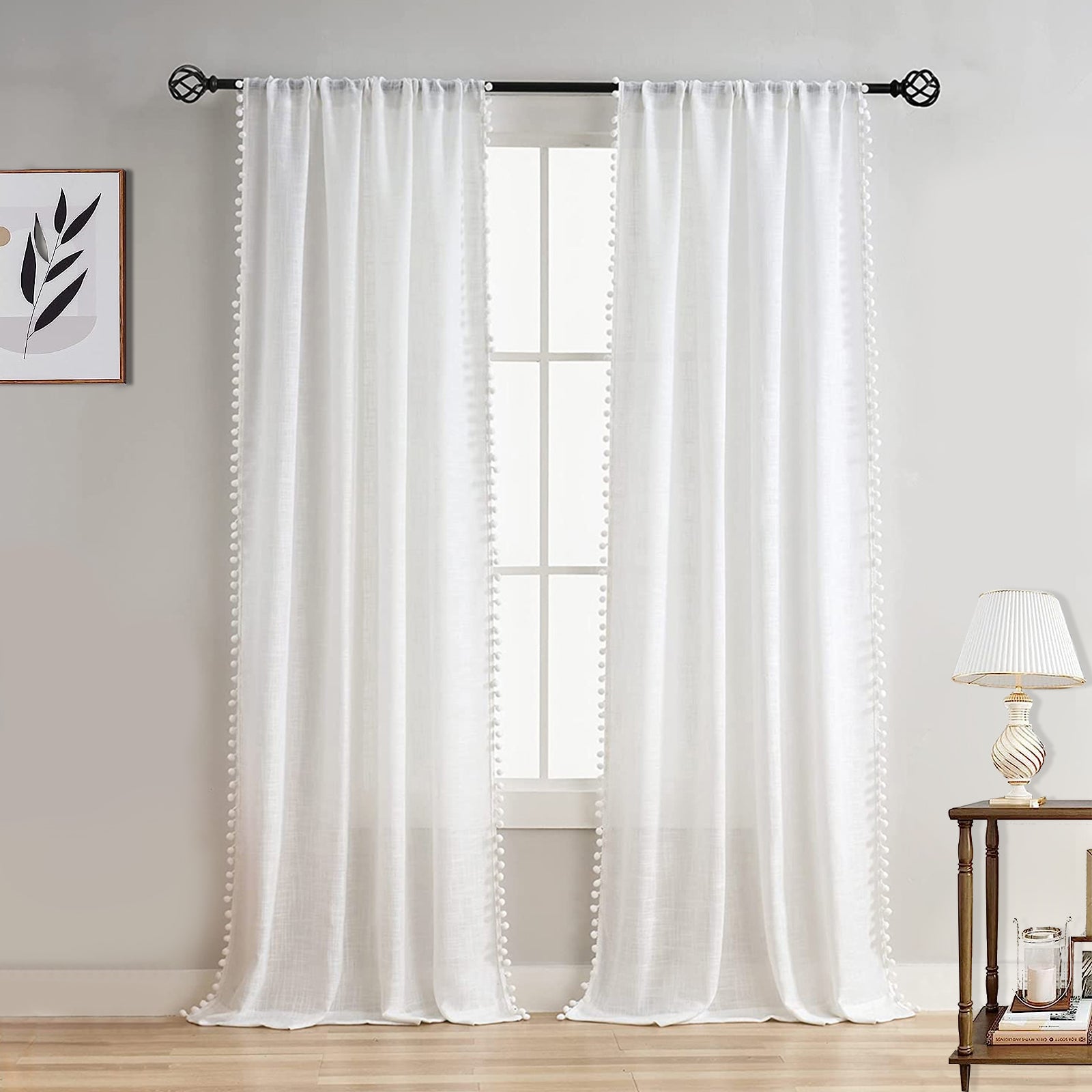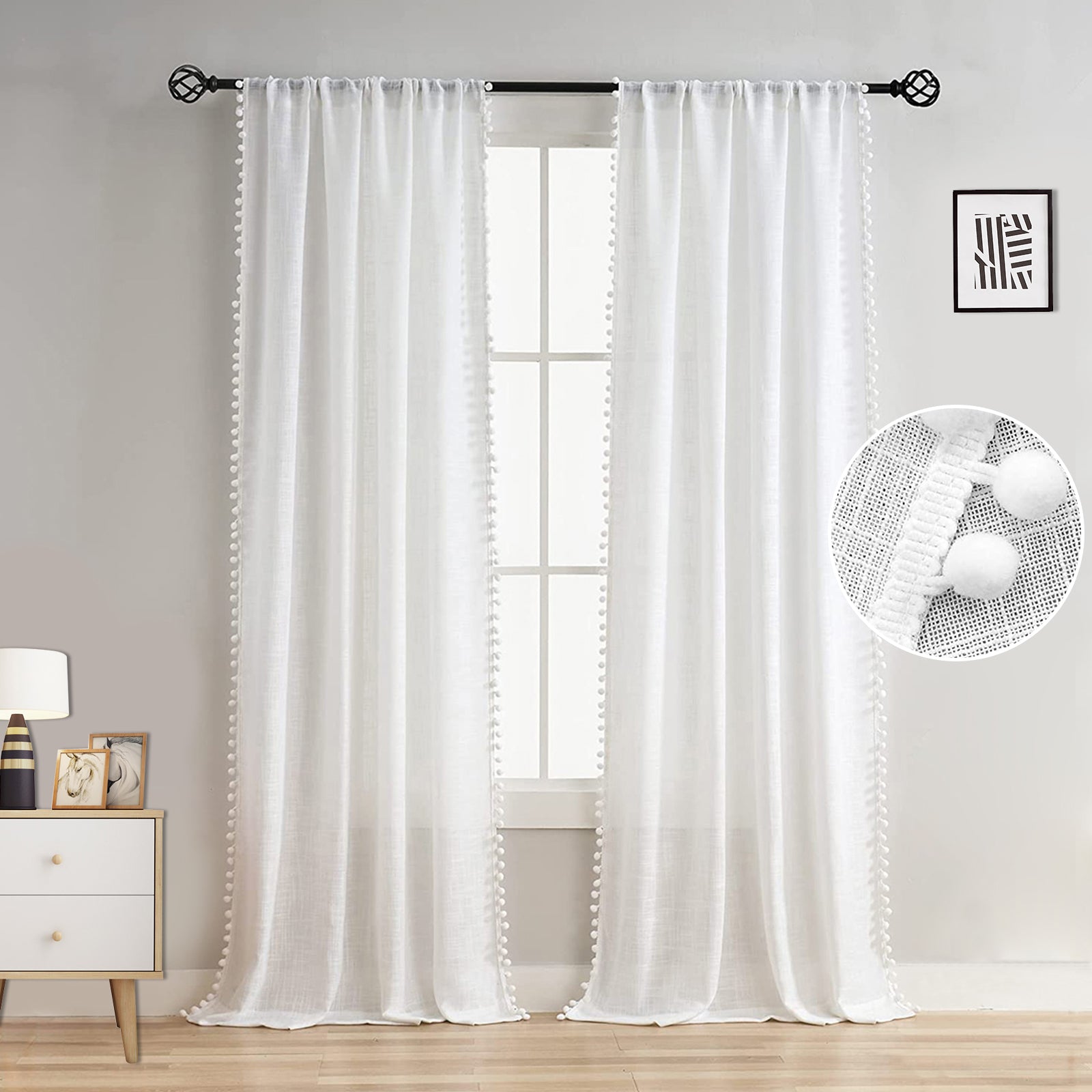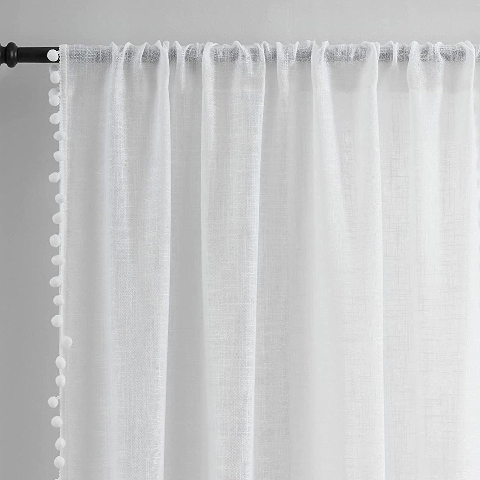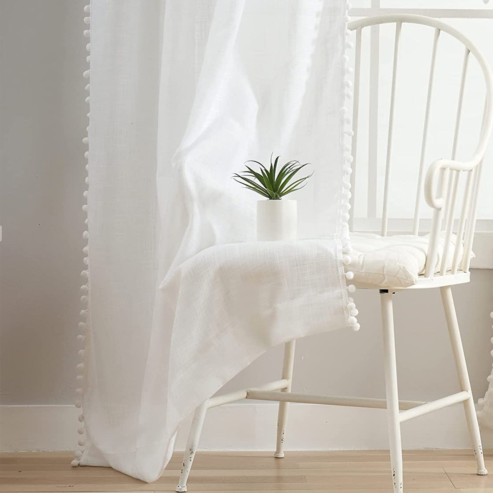 This sheer curtain with decorative pompoms brings playful boho charm to your home. The lightweight voile fabric gently lets in daylight, creating a bright and cozy atmosphere while also offering pleasant privacy.