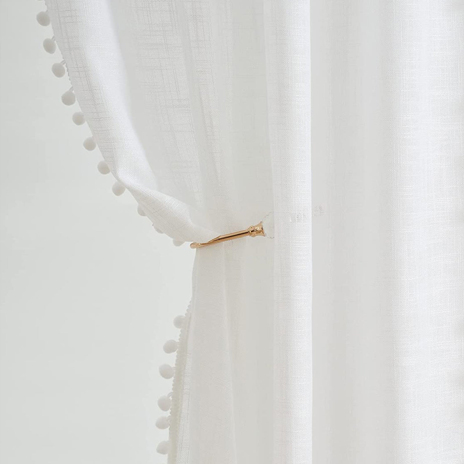 The material is soft, durable, and easy to care for. Each curtain comes with a matching tieback (random color).