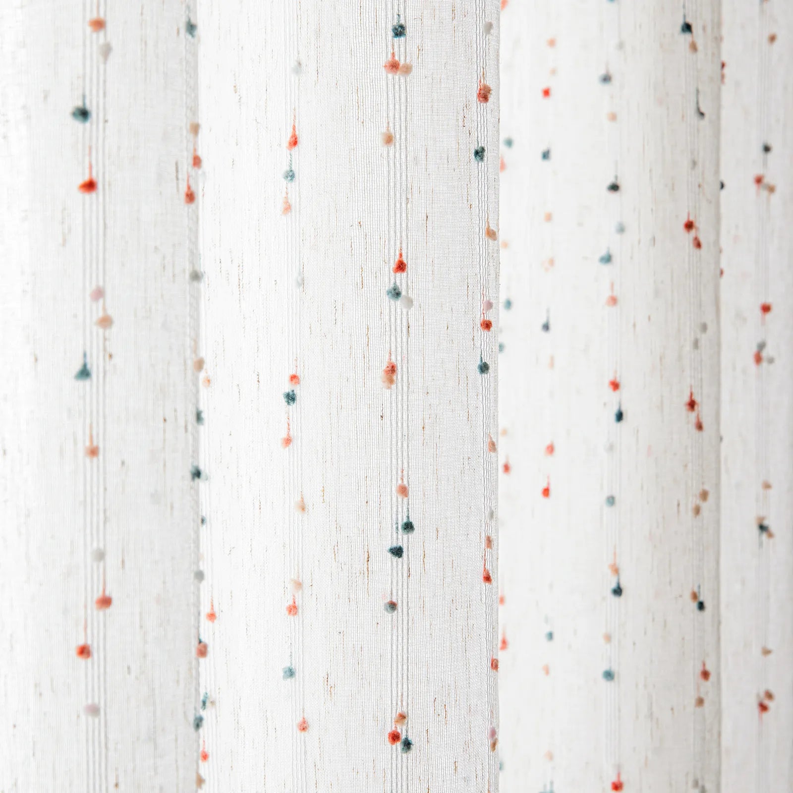 Sheer curtain with pompoms – boho style, white