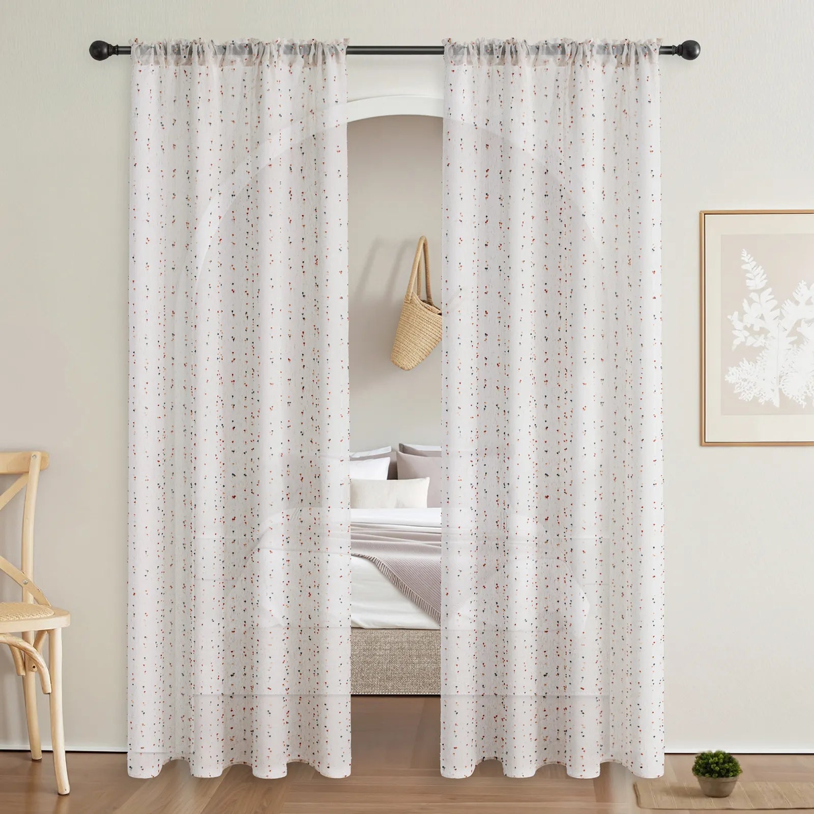 The simple white design is perfect for living rooms, bedrooms, children's rooms, or as decoration for parties and weddings. Thanks to the rod pocket suspension, the curtain is quick and easy to install. Each curtain comes with a matching tieback (random color).