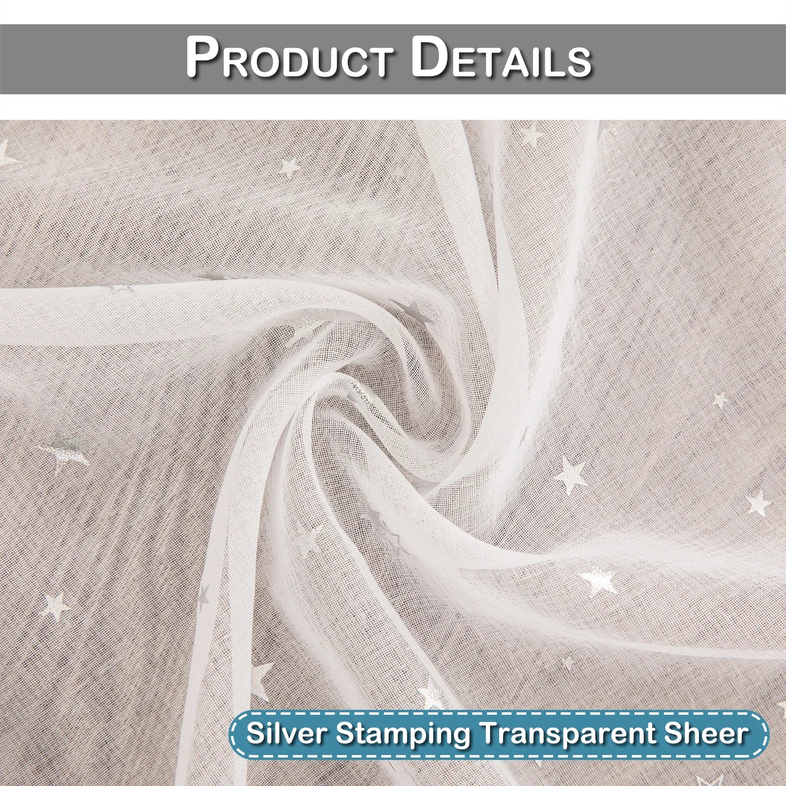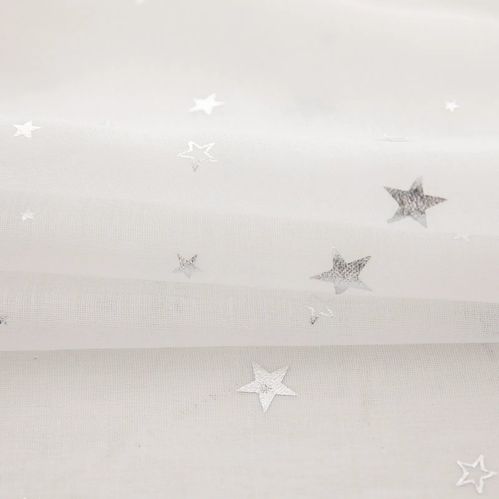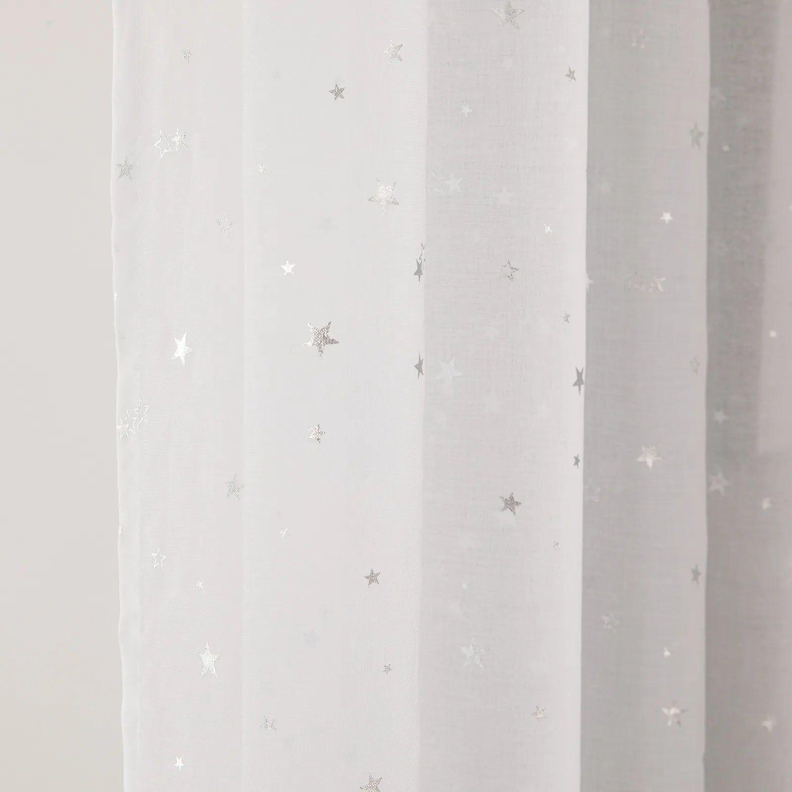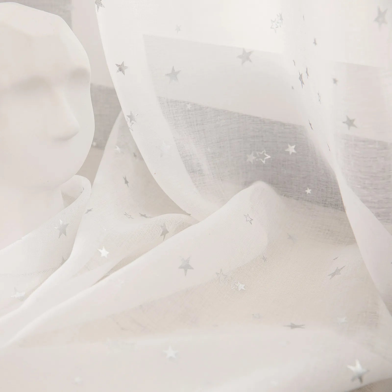 This sheer curtain with a silver star stamp is the perfect choice for a romantic and playful living ambiance. Crafted from high-quality polyester, it's super lightweight, semi-transparent, and allows soft daylight to filter into the room while still providing pleasant privacy.