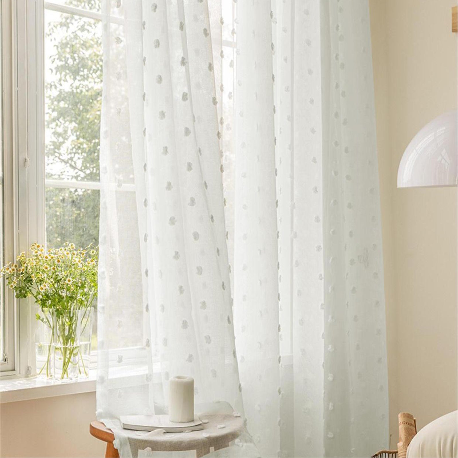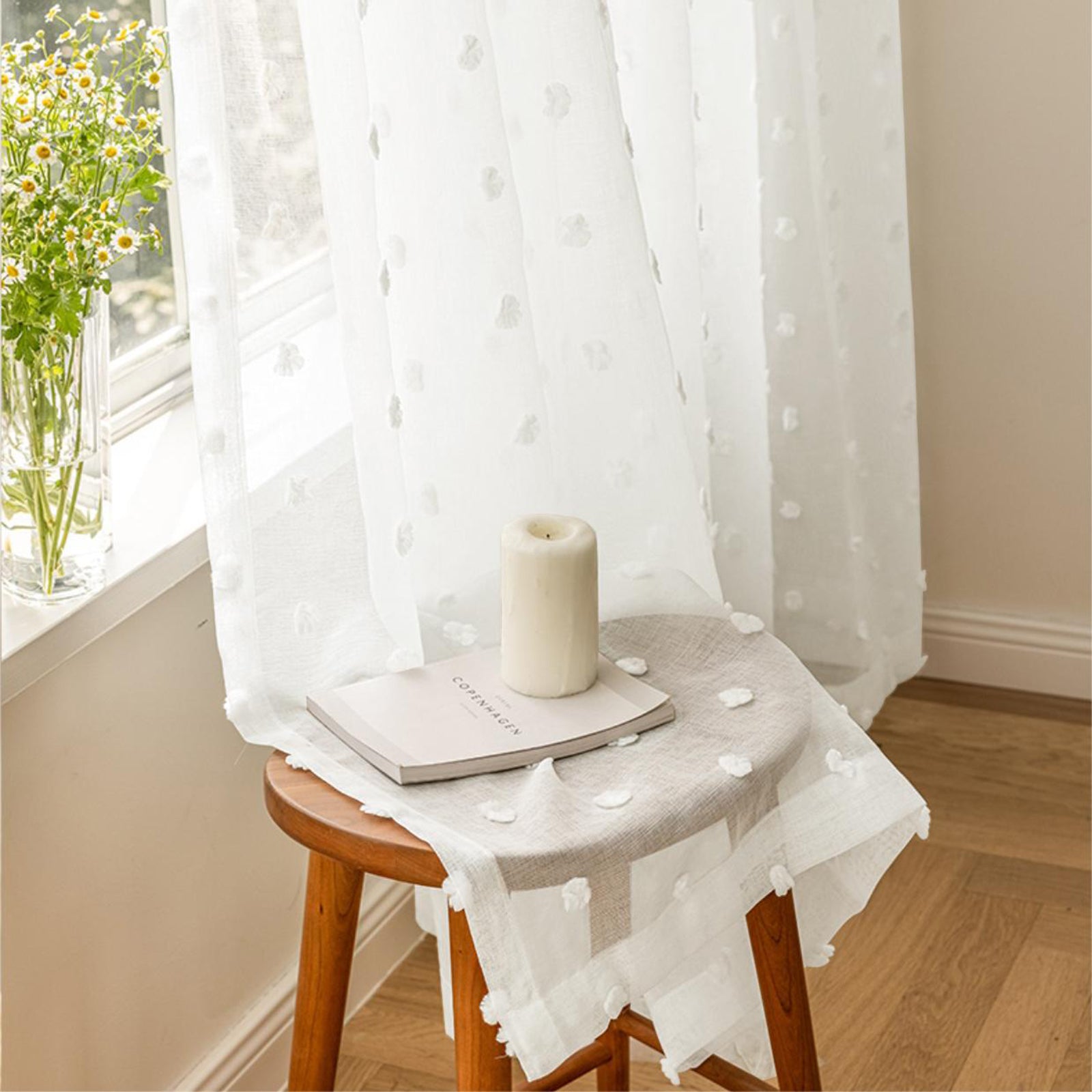 This white boho curtain with decorative pompoms brings a playful lightness to your home. The delicate voile fabric drapes softly and allows daylight to gently shine through while providing a pleasant degree of privacy. Ideal for living rooms, bedrooms, or festive occasions such as weddings and parties.