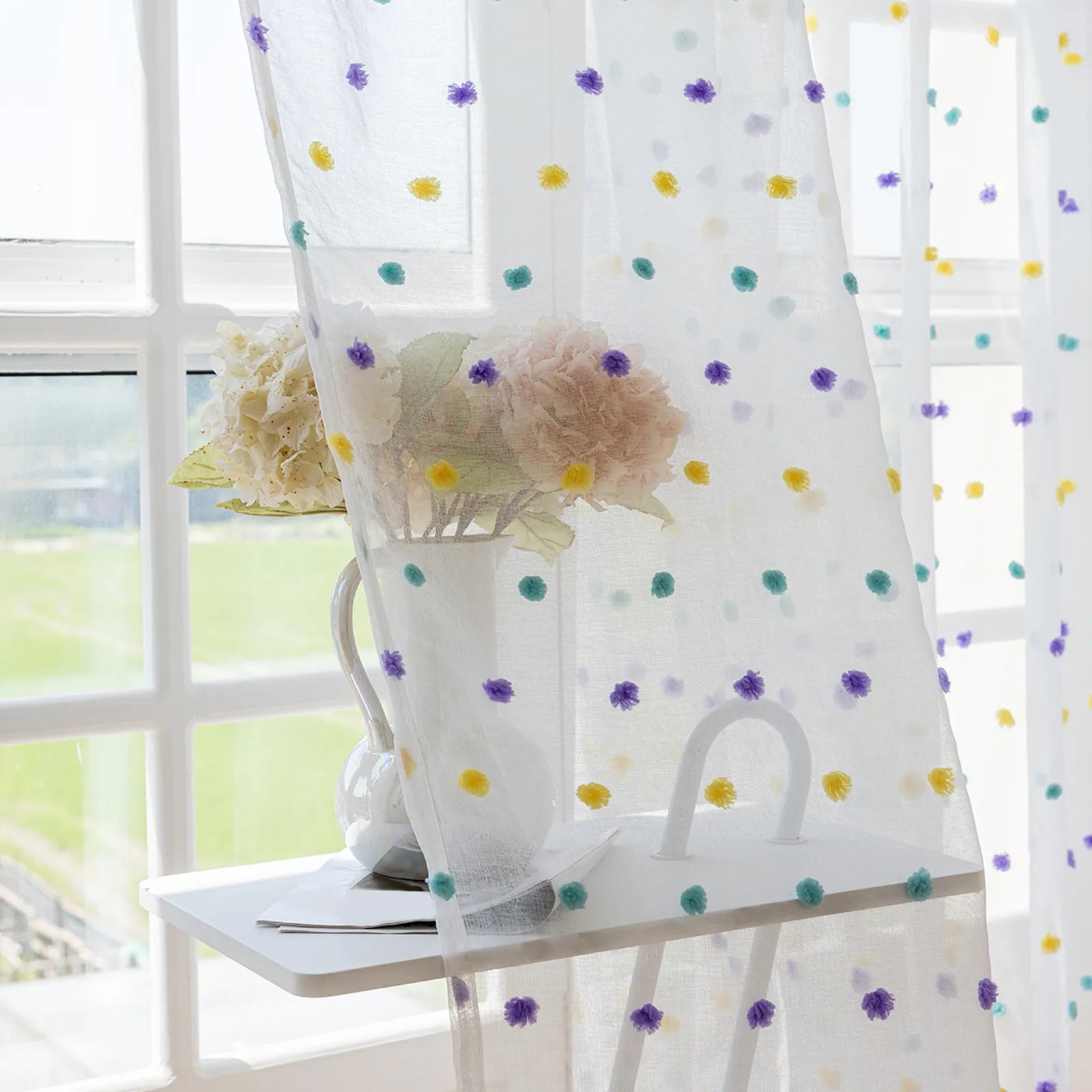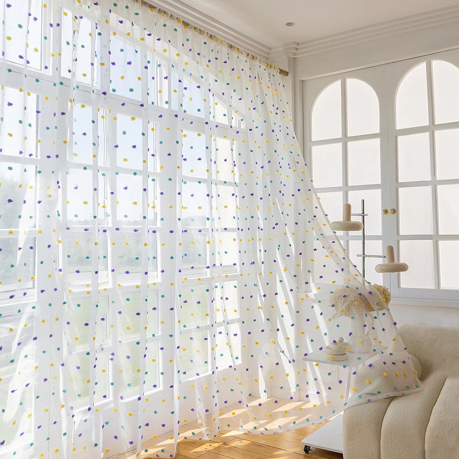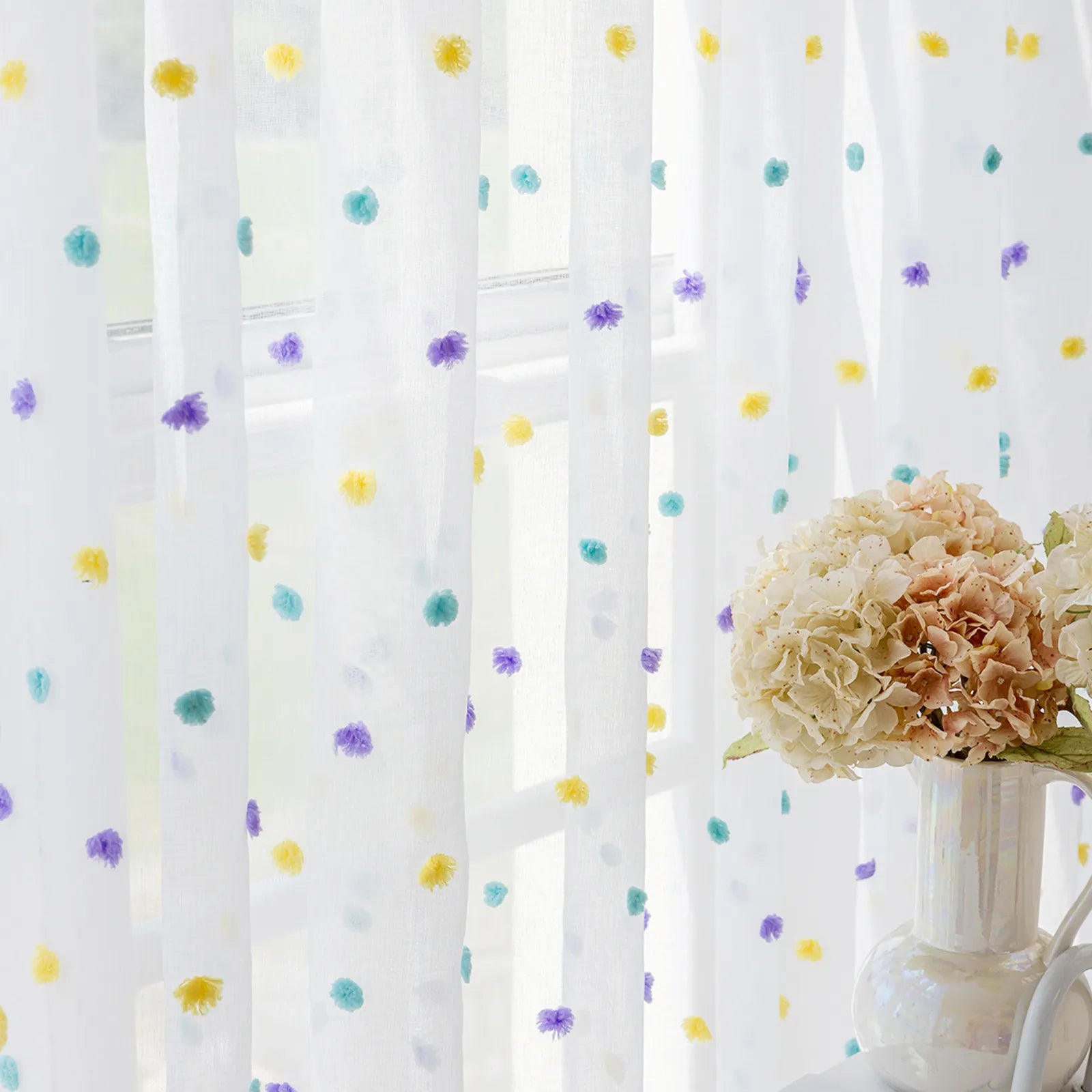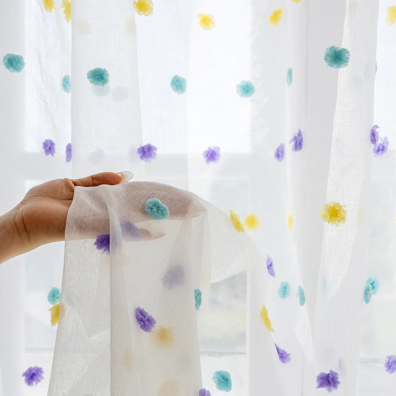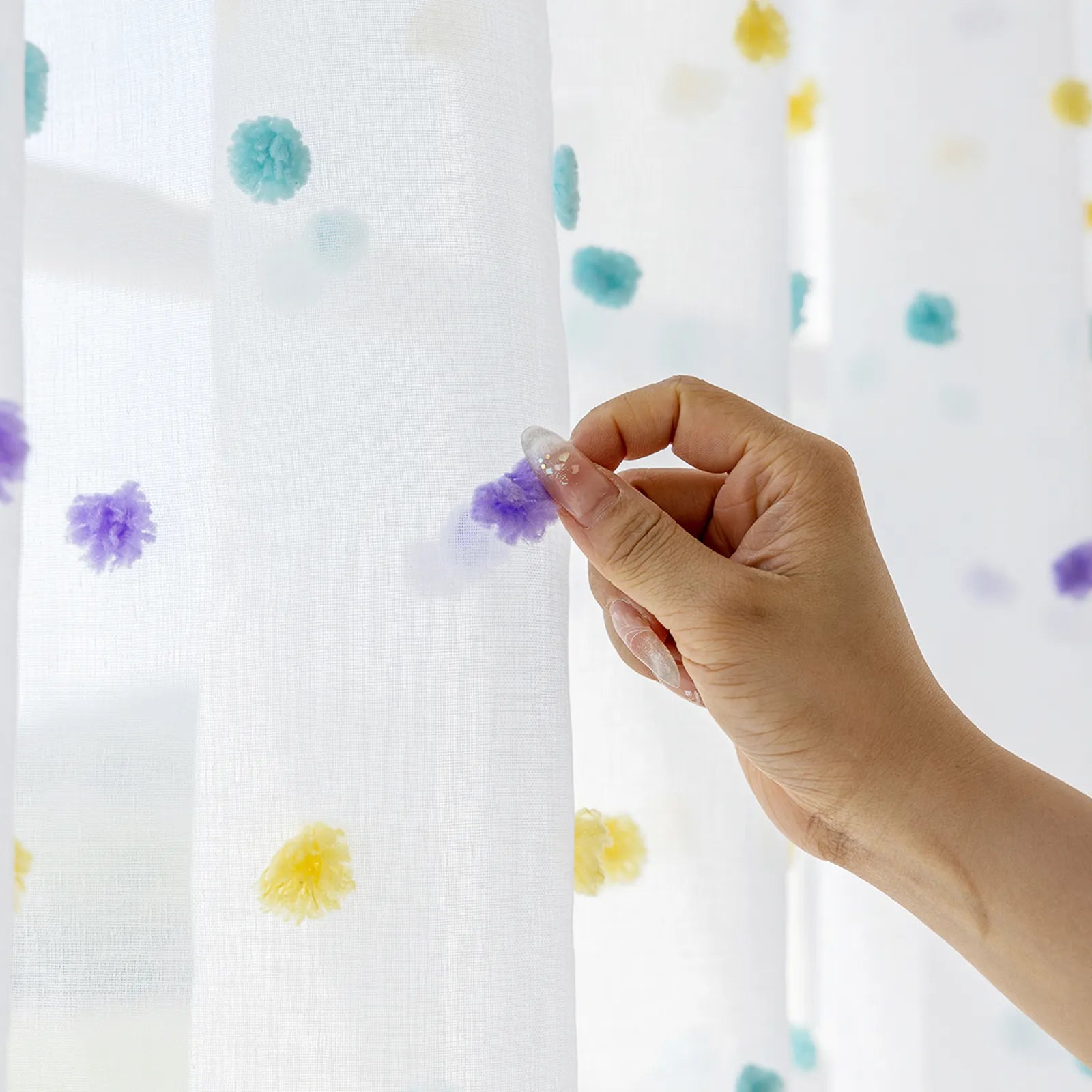 This sheer curtain with decorative pompoms adds a modern boho charm to your home. The lightweight voile fabric gently filters daylight, creating a bright and welcoming atmosphere while offering a pleasant level of privacy.