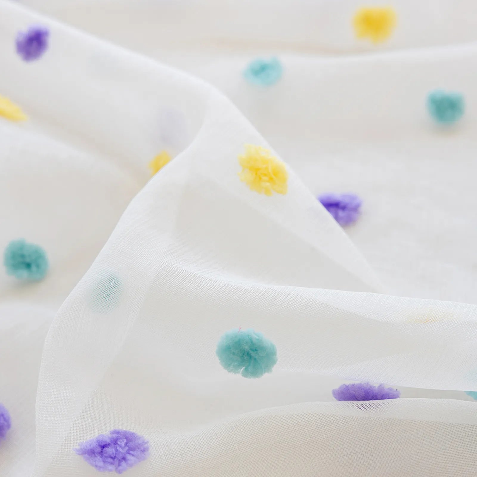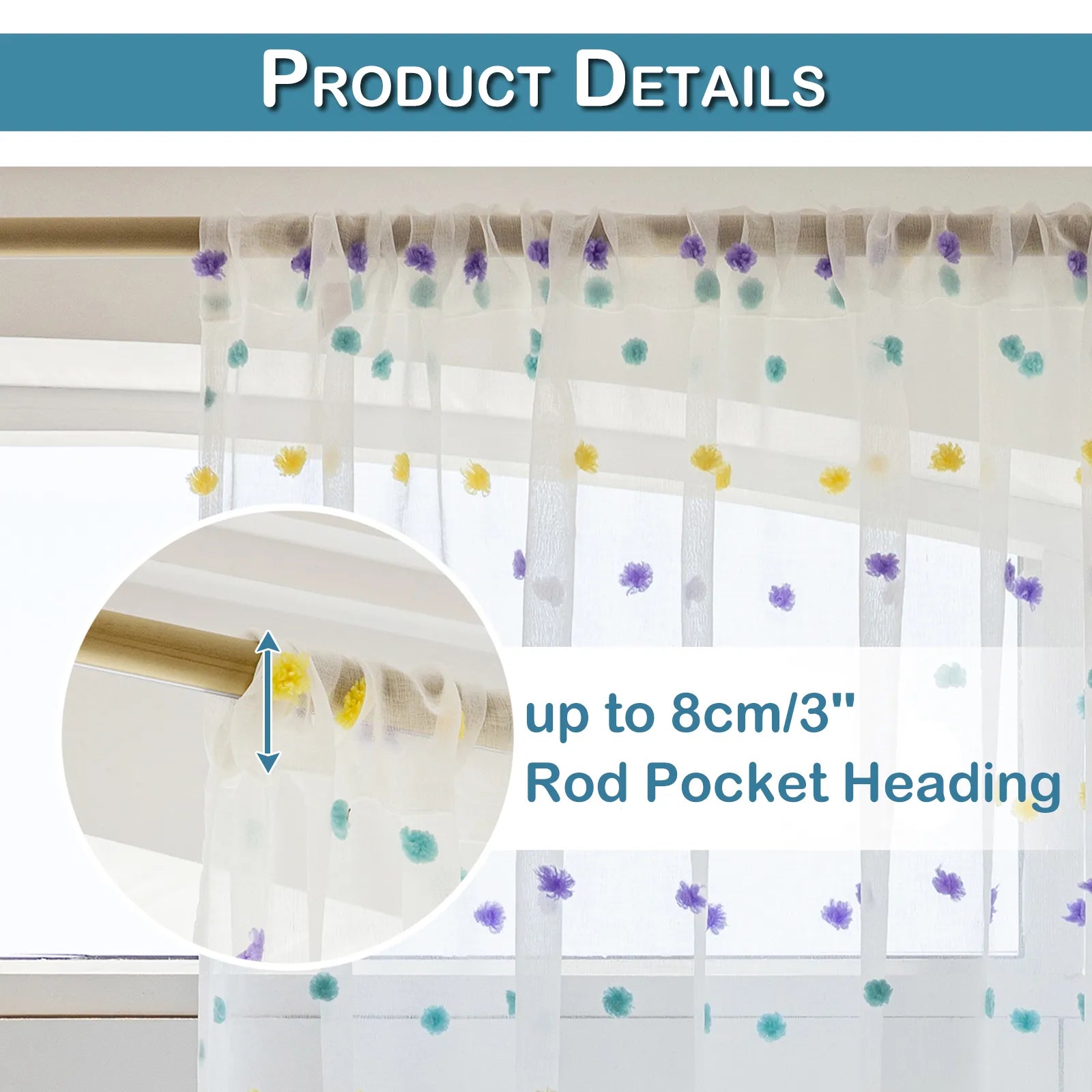 The white design with playful pompoms is perfect for living rooms, bedrooms, children's rooms, or as a decorative addition to weddings, parties, and special occasions. Thanks to the rod pocket hanging system, the curtain is quick and easy to hang.