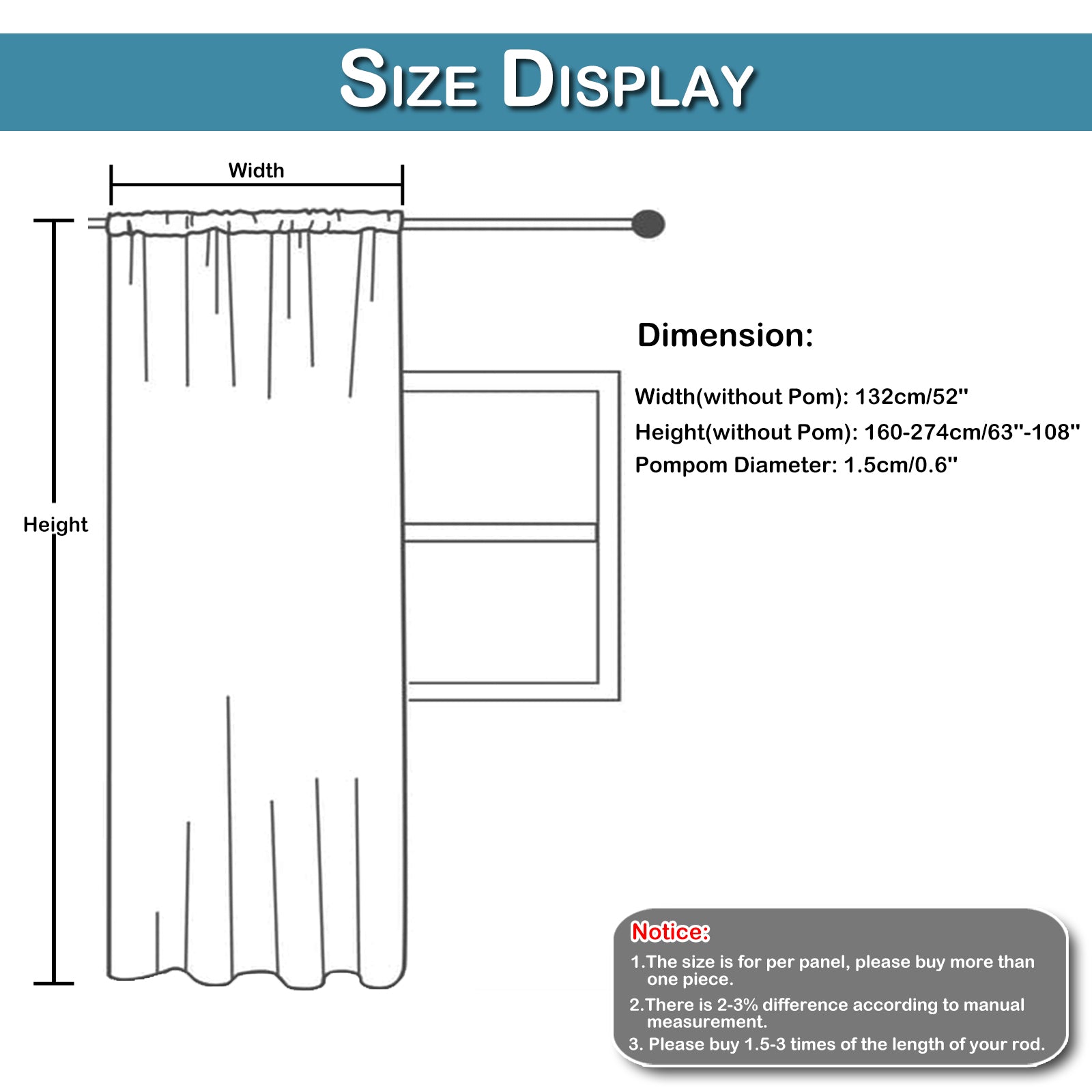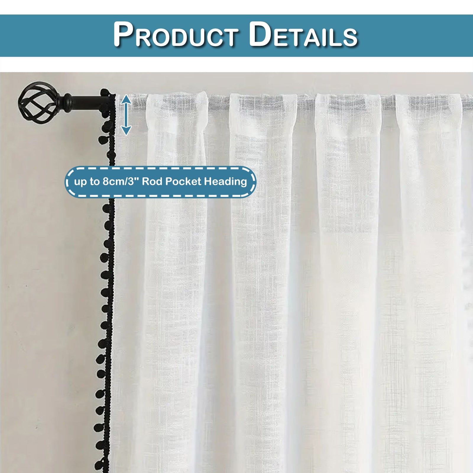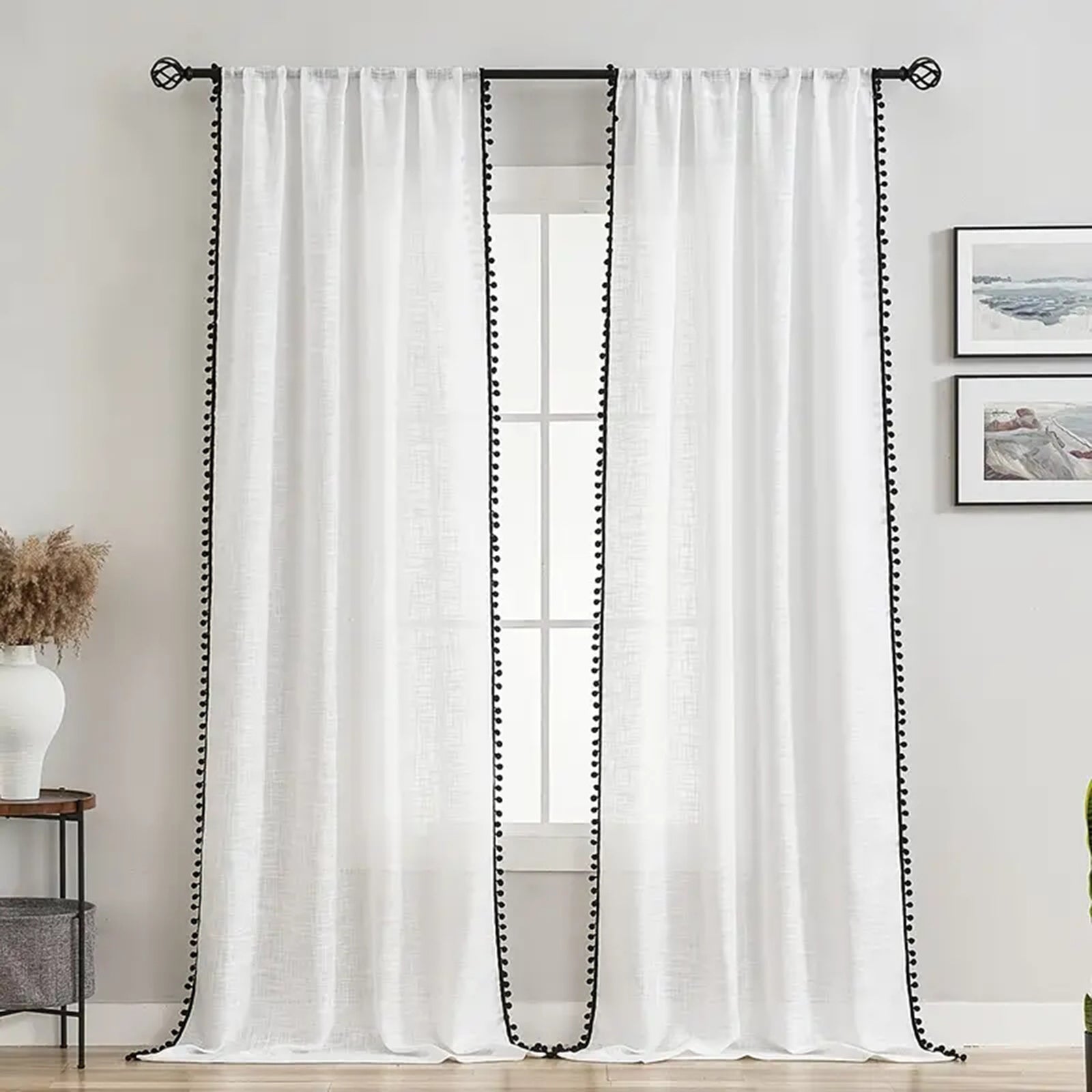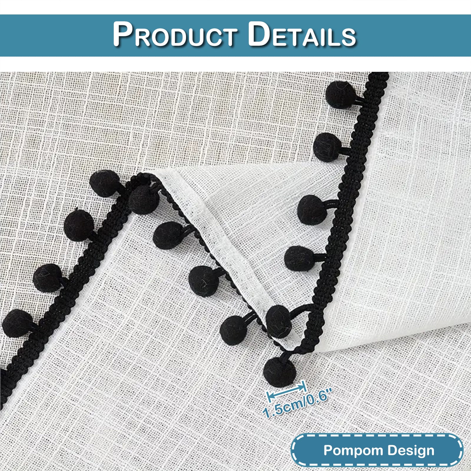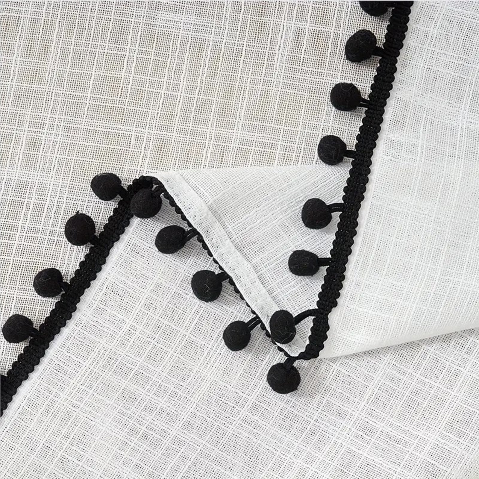 The white design with black pompoms creates stylish contrasts and is perfect for living rooms, bedrooms, children's rooms, as well as for weddings, parties, or special occasions. Thanks to the rod pocket hanging system, the curtain is quick and easy to hang.