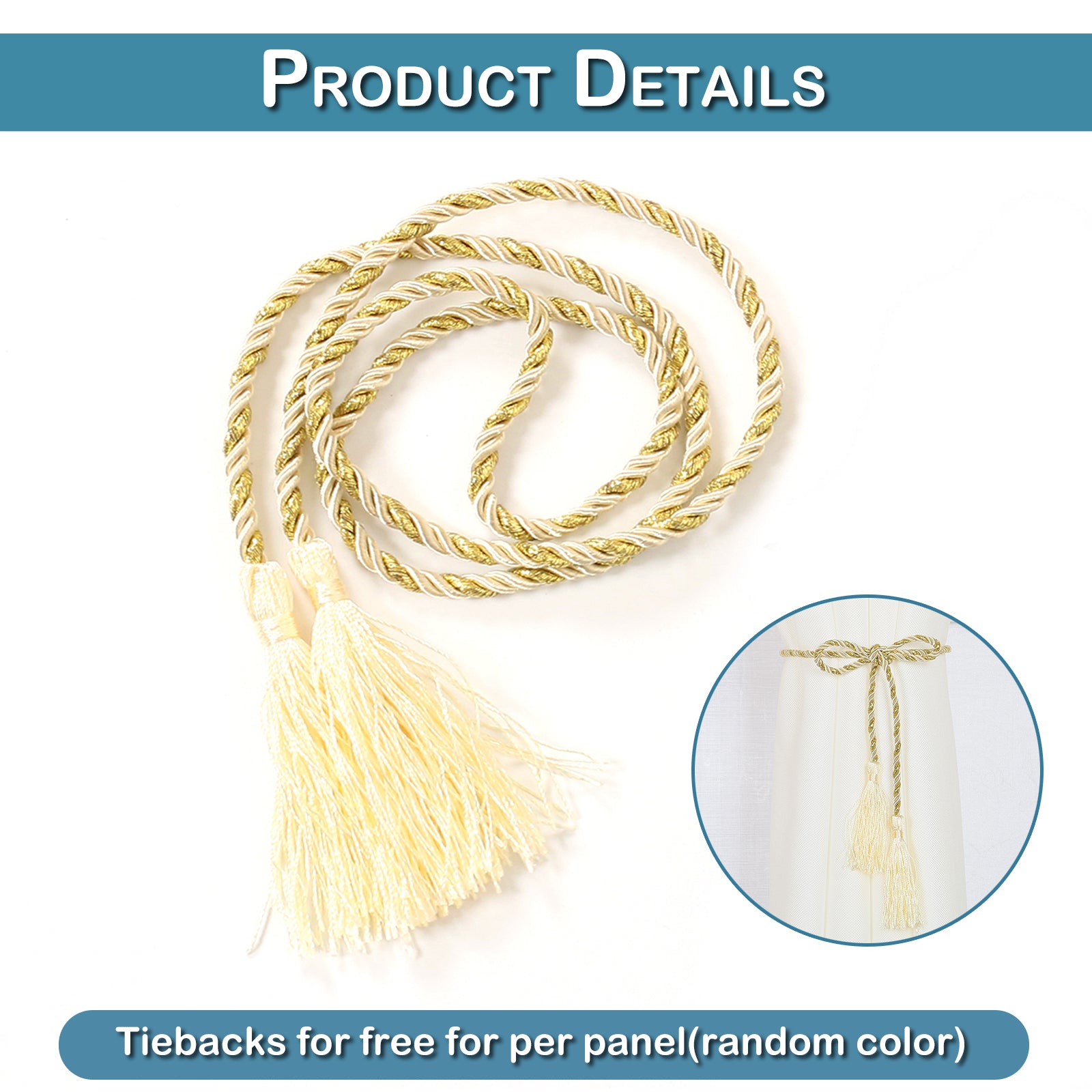The material is soft, durable, and easy to care for. Each curtain comes with a matching tieback (random color).